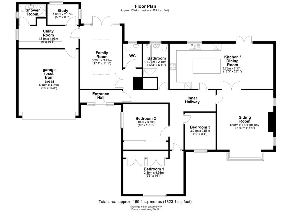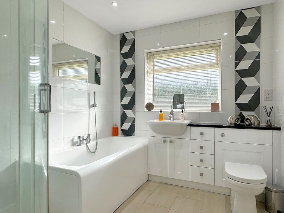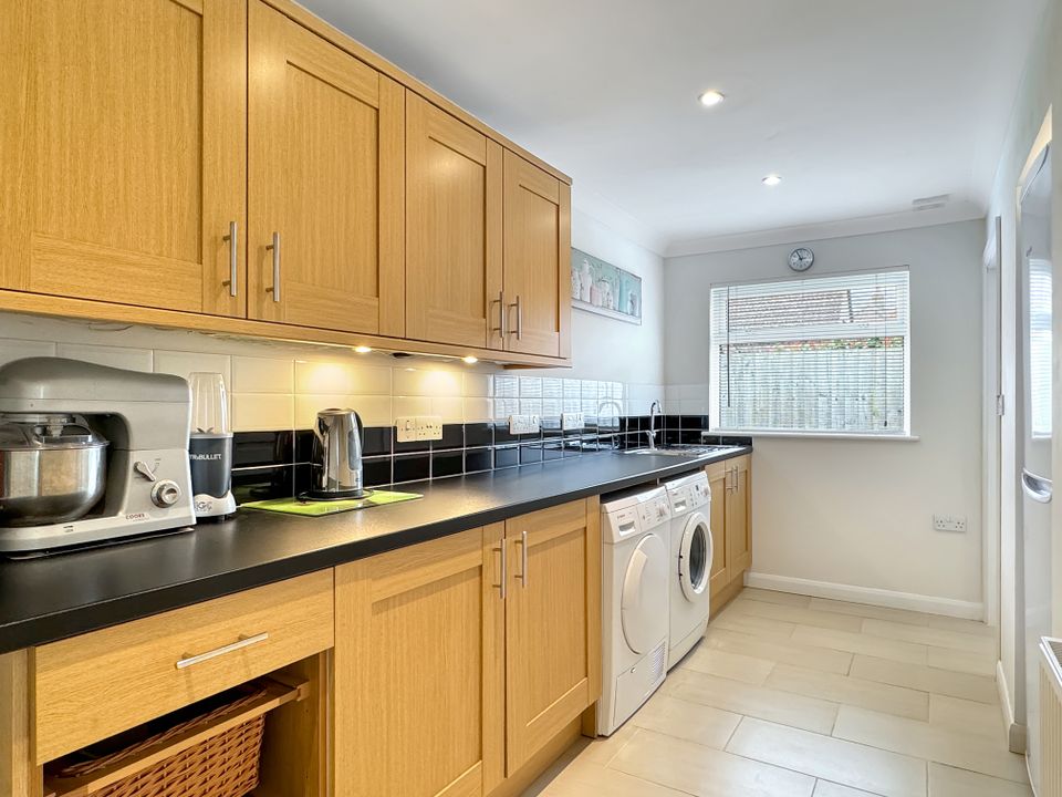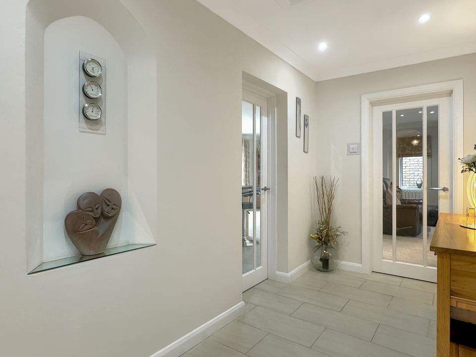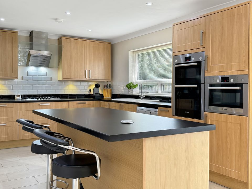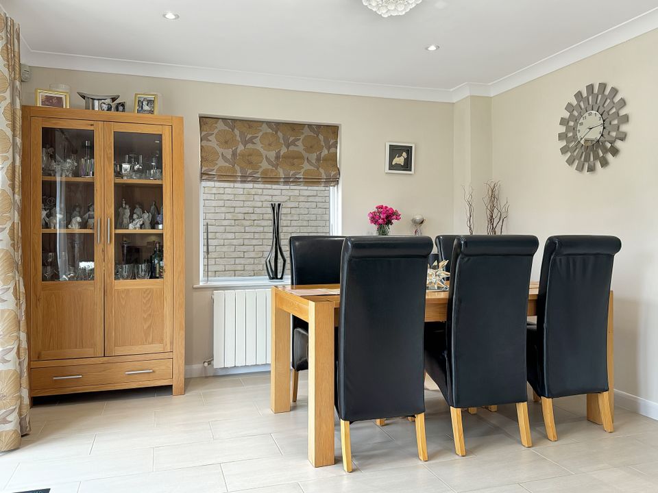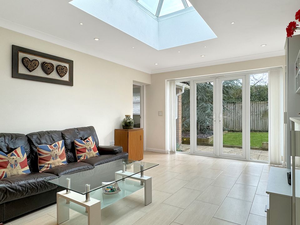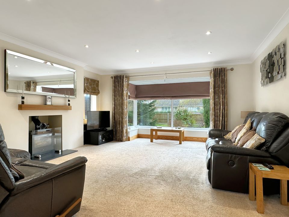 Approached over a neat front garden, there is an area of lawn interspersed with mature trees and shrubs, and a wide driveway that provides parking for multiple vehicles and gives access to the garage. The front door opens to a welcoming entrance porch, with the inner hallway off, and from here, there is access to all the principal rooms. The sitting room is a generous, dual aspect room with a large bay window providing views over the front garden, and there is an attractive fireplace inset with a log burner. Double doors open to the kitchen dining room which is beautifully fitted with high quality cabinets set above and below the working surfaces, there is a built in microwave and double oven, an inset hob with extractor over, and space for a dishwasher and American style fridge freezer. There is also an island with a breakfast bar, and wine cooler, and additional cabinets below. The dining area is spacious with plenty of room for a large table and chairs and there are double doors which provide lovely views over the garden and give access out. The property has a stunning second reception/family room which is exceptionally light with glazed doors providing access to the garden and a large overhead lantern which floods the room with natural light. The utility room is off the sunroom and is fully fitted with a range of cabinets set above and below the working surface, there is a sink and drainer, space for a washing machine and drier, an integrated fridge, space for a fridge freezer and a personal door into the garage. There is a study and a modern shower room, fitted with a shower enclosure, w.c. and hand basin off the utility room and these rooms in combination with the family room could very easily be converted into a self contained annexe if required.
