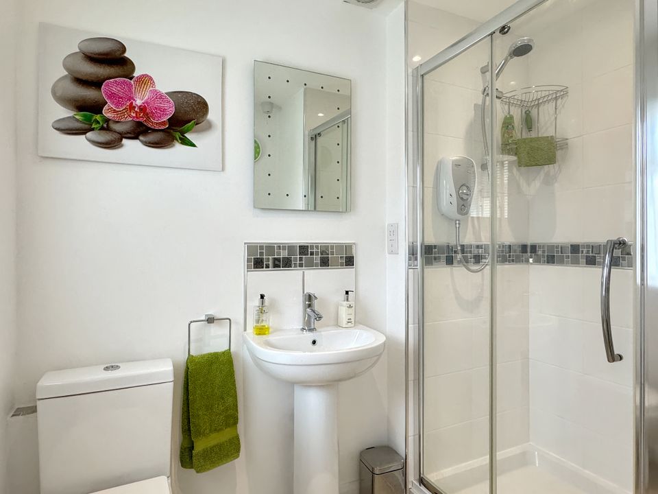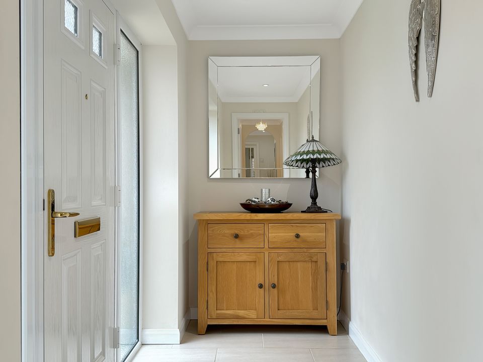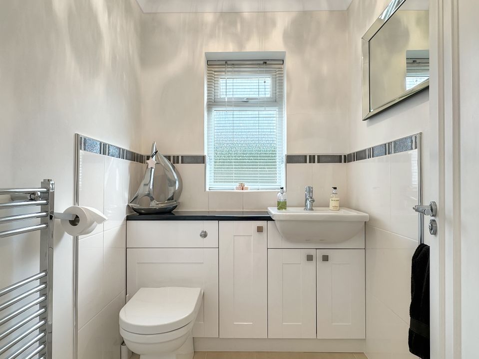 The property has three good bedrooms located off the inner hallway and these are grouped together to give a greater sense of privacy. The main bedroom is a bright room with fitted wardrobes to one wall and there is a large window overlooking the front garden. The second bedroom is a good double with wardrobes extending across one wall and the third is a small double or a very comfortable single size room. There is a family bathroom fitted with a bathtub, separate shower enclosure, and vanity units with concealed cistern w.c. and hand basin over. There is also a modern cloakroom fitted with vanity cabinets, a concealed cistern w.c. and a hand basin.