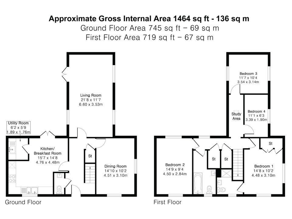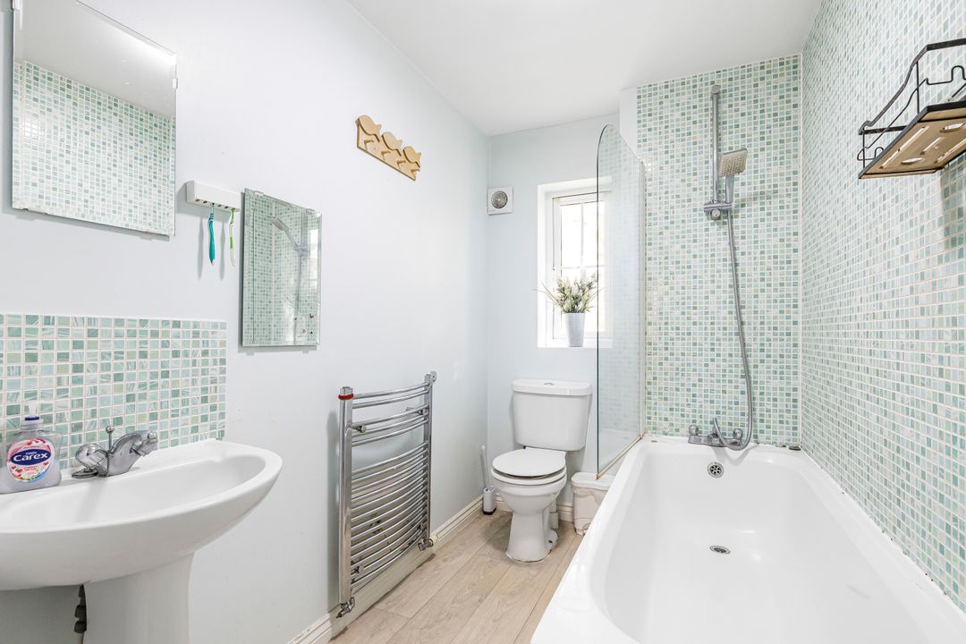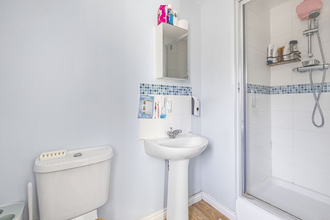 Upstairs, the first floor offers four bedrooms, including a spacious principal bedroom with fitted wardrobes and an en-suite shower room. The remaining bedrooms are served by a modern family bathroom.