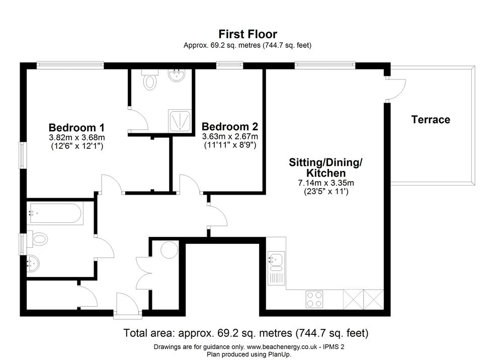 There are two bedrooms, including a dual-aspect master bedroom with an en-suite shower room. The second bedroom is served by a contemporary family bathroom, both of which are fitted with modern white three-piece suites.