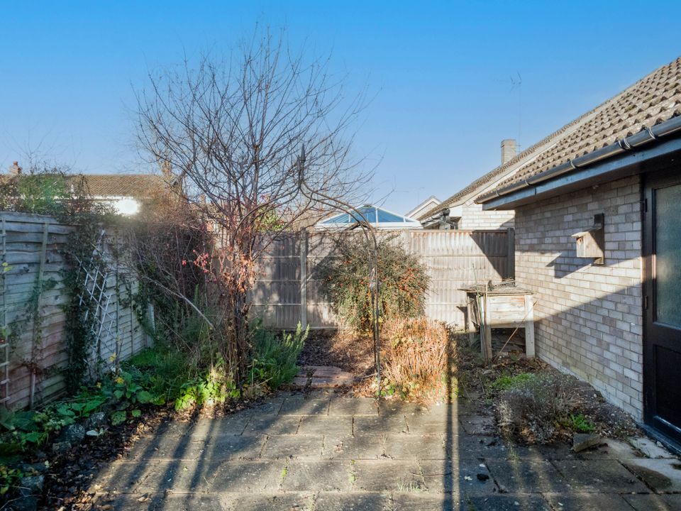 The gardens extend to the side and rear of the property, offering privacy with high-level fencing and a mix of paved and gravelled areas, enhanced by a selection of mature plants and hedgerows.