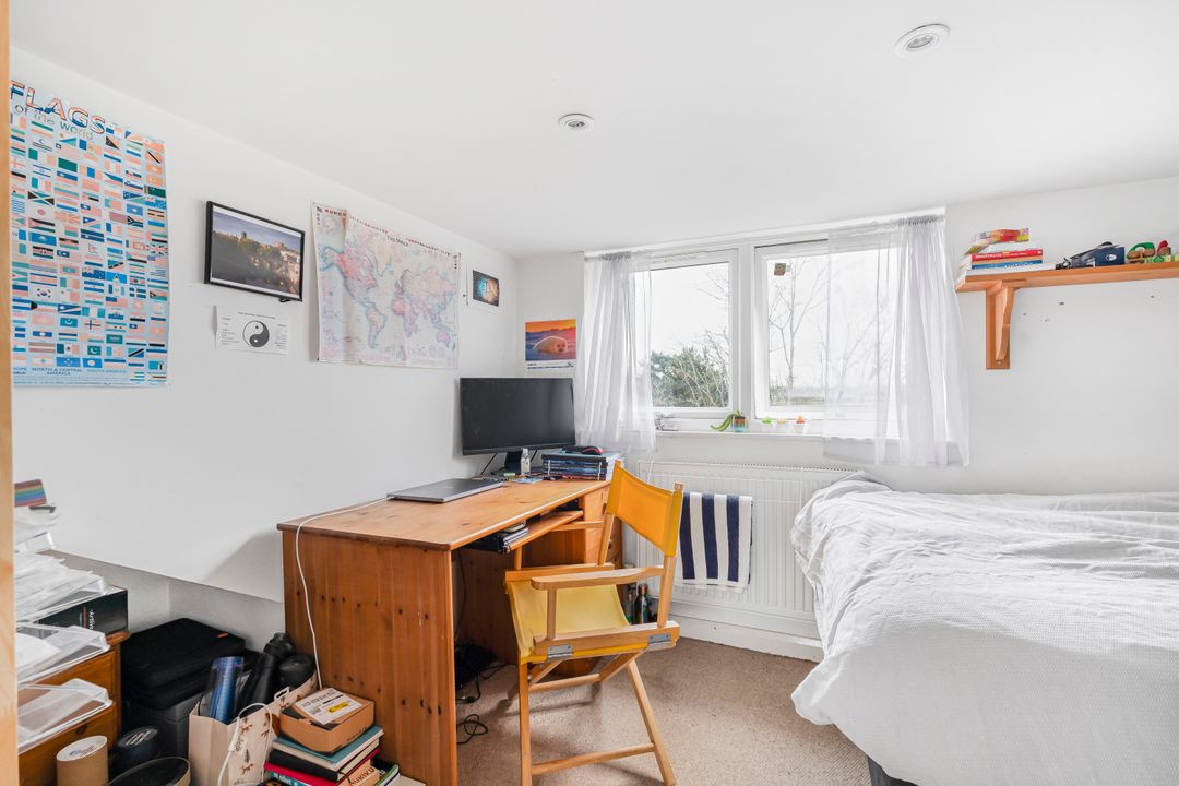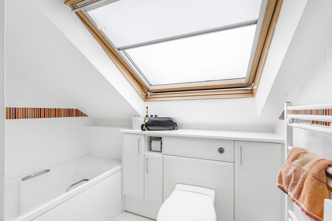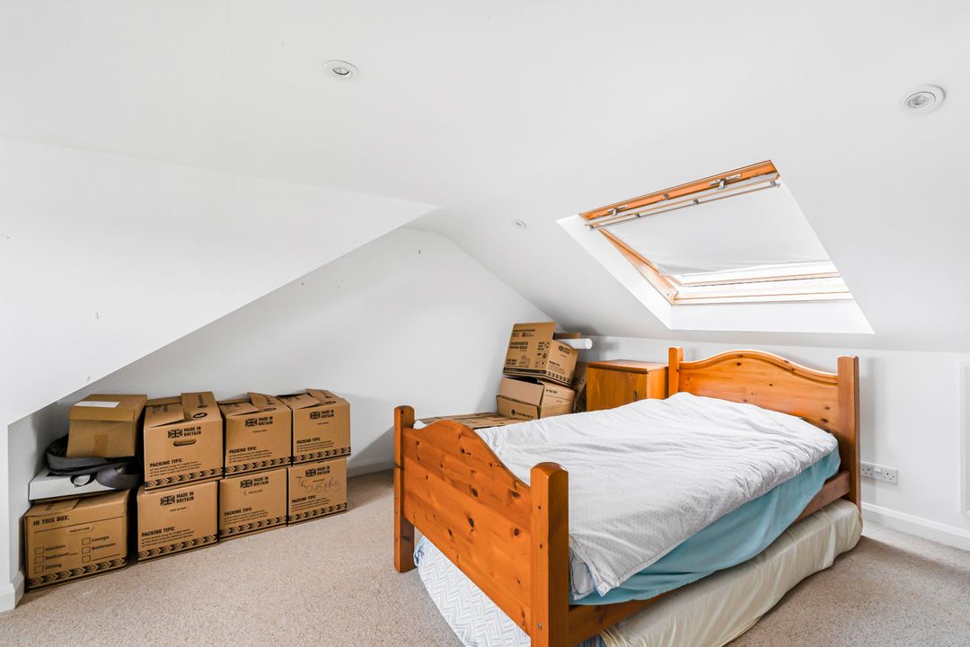 The second floor features a rear dormer. It includes two well-proportioned bedrooms and a convenient bathroom to the front, making it an ideal space for guests, teens, or a private retreat. While there is some restricted head height, this upper floor maximizes its potential, providing additional versatility to the home.