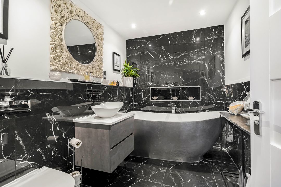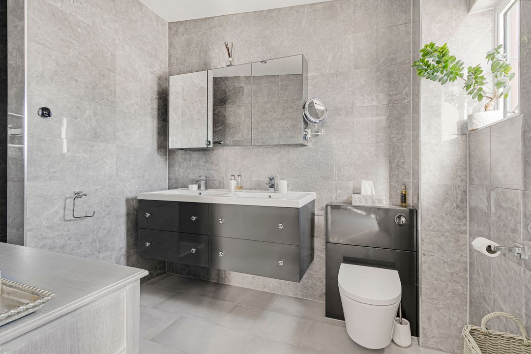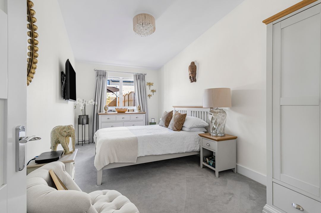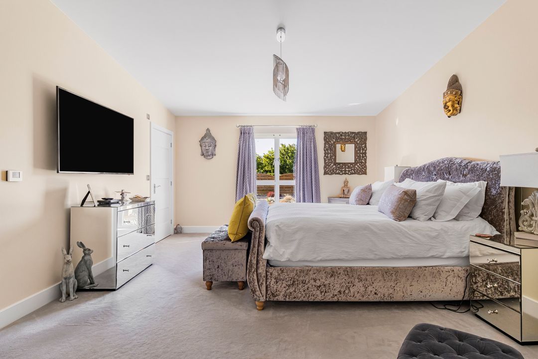 The current layout features three luxurious double bedrooms, each enjoying views of the surrounding gardens. The master suite boasts a sleek four-piece en-suite shower room and an adjoining dressing room, formerly the fourth bedroom. Bedroom two also benefits from a stylish en-suite, while bedroom three is served by a beautifully appointed family bathroom.