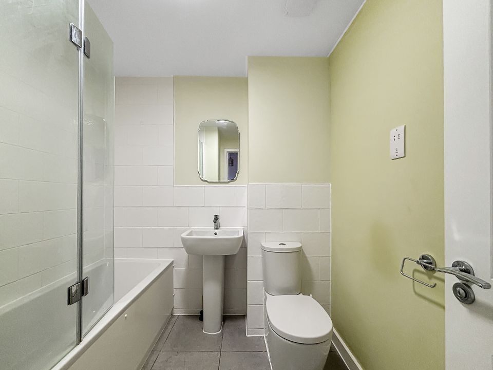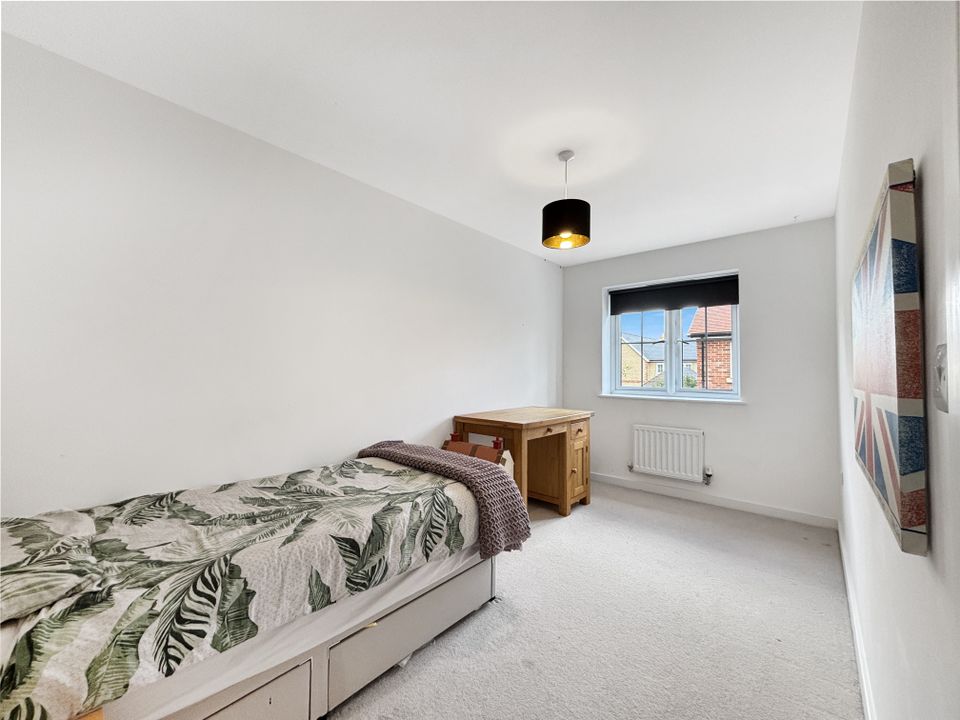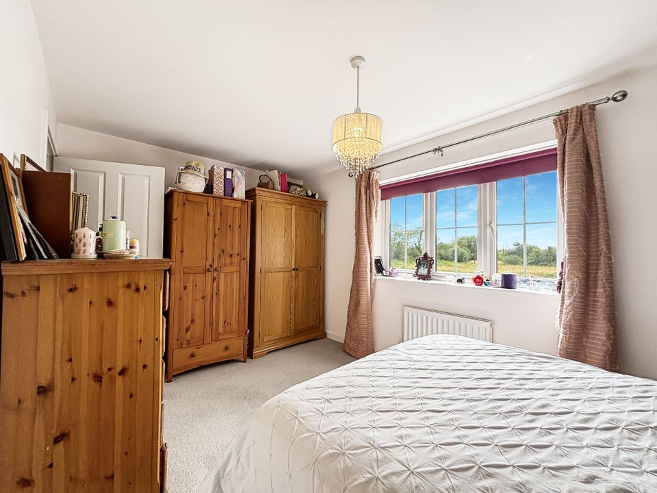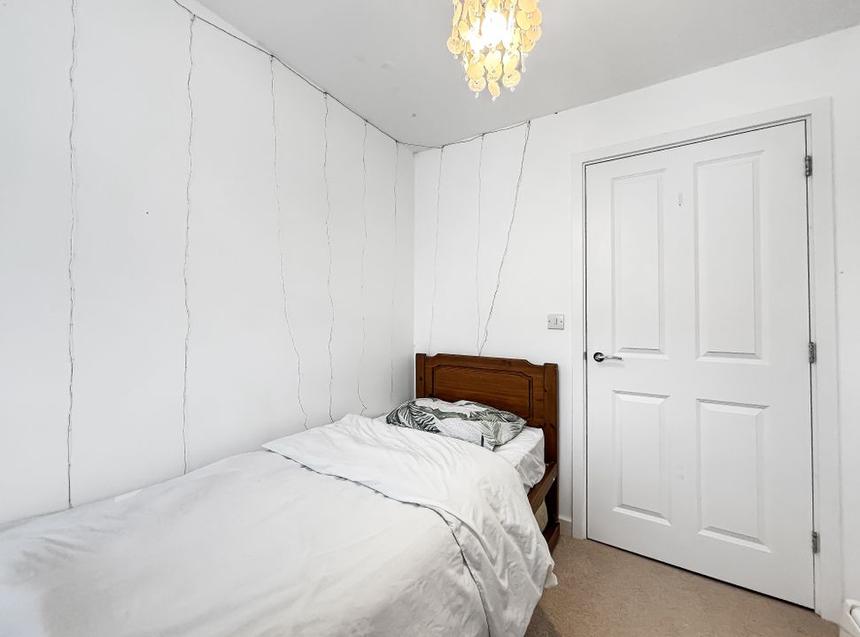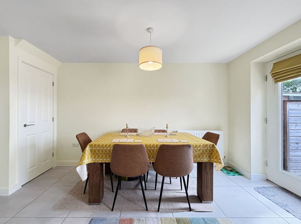 Upstairs, the property benefits from three well-sized bedrooms. The principal bedroom enjoys a quiet rear aspect, while Bedroom 2 and Bedroom 3 provide ideal space for children, guests or a home office. The family bathroom is well-appointed with a three-piece suite including a bathtub with shower over.