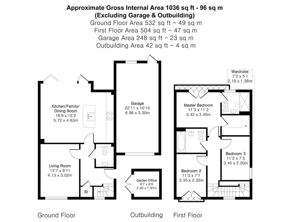 The large garage provides superb storage with a door to the front and rear with a window overlooking the rear garden. Potential to convert and extend into the roof space subject to the necessary consents.
