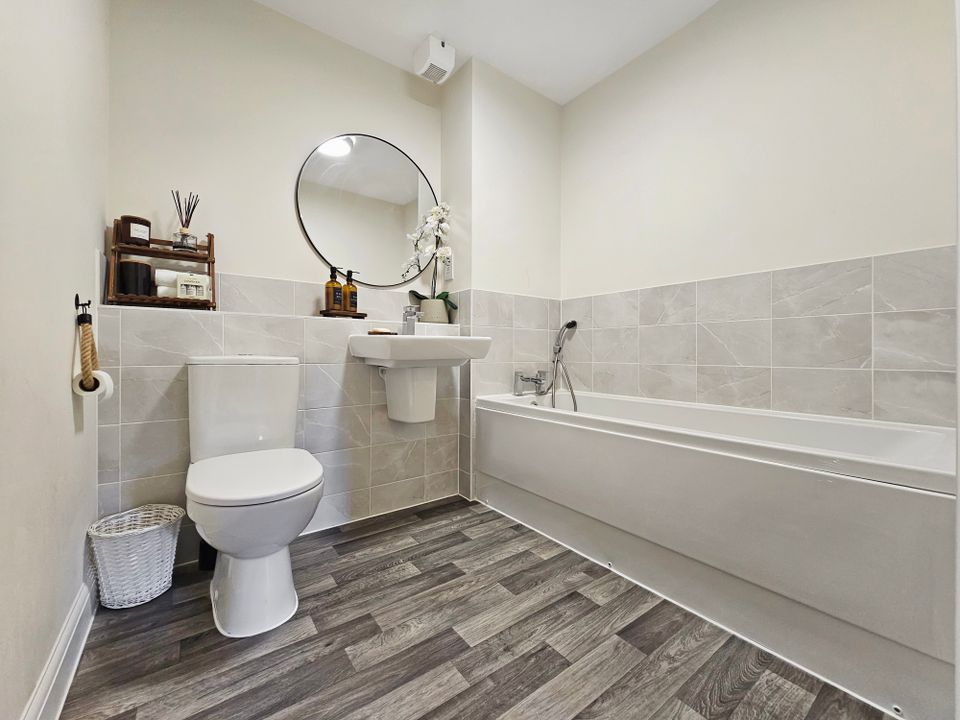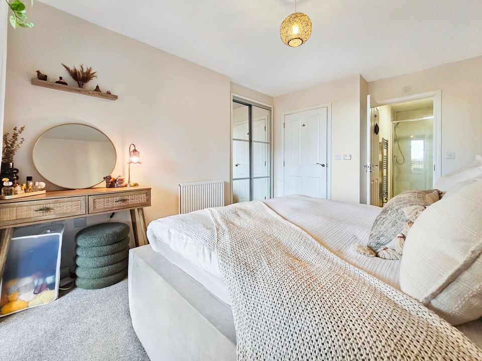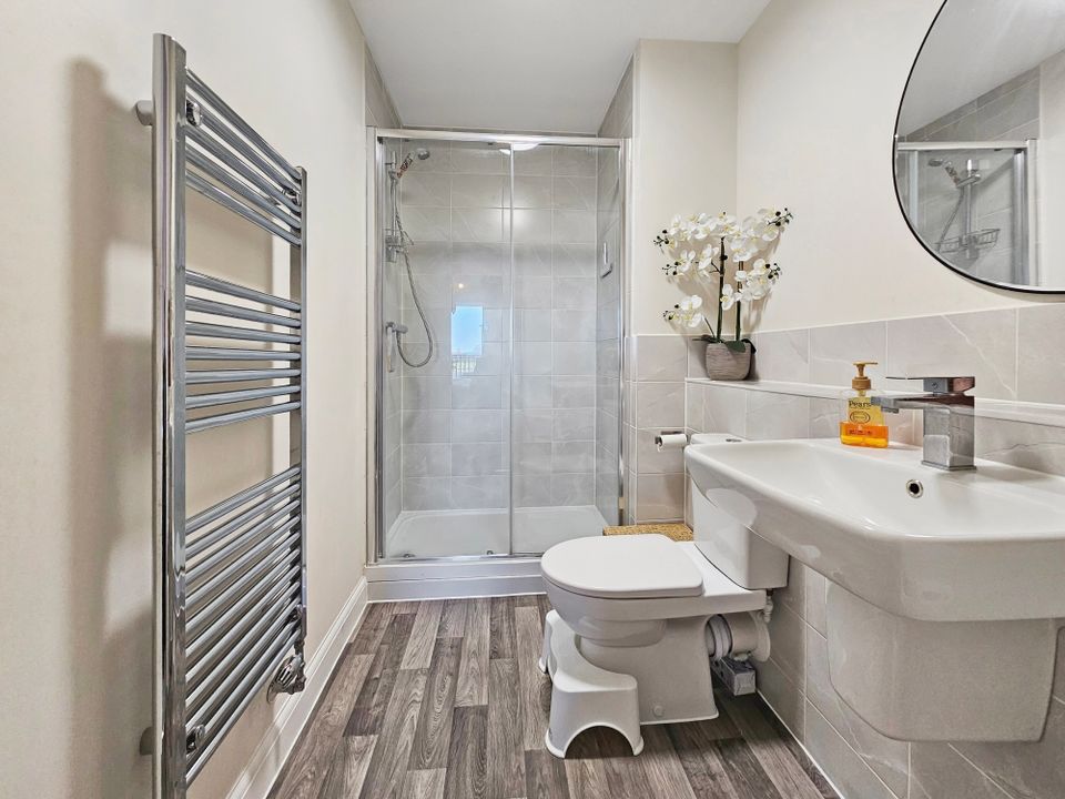 Both bedrooms are generous doubles with bedroom one benefiting from an ensuite shower room and mirrored built-in wardrobes. The family bathroom completes the accommodation and has been fitted with a modern three-piece white suite with shower over the bath and attractive floor-to-ceiling tiles.