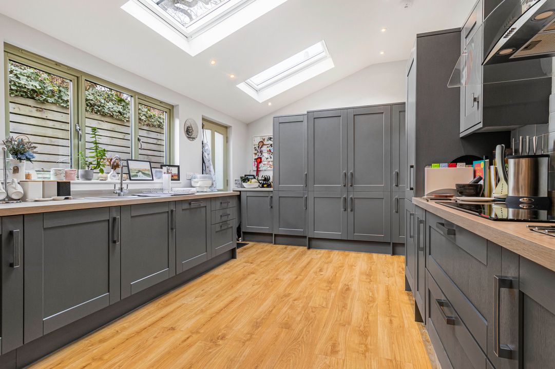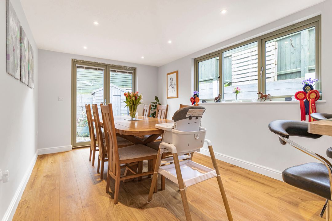 The heart of the property is the impressive open-plan kitchen/dining room, created as part of the owners’ extension programme. Finished with shaker-style cabinetry, quality worktops and integrated appliances, this light-filled space is ideal for modern family life and entertaining alike. The layout flows effortlessly, with ample space for dining and direct access out to the garden.