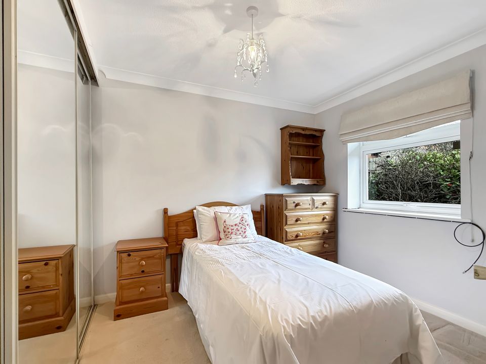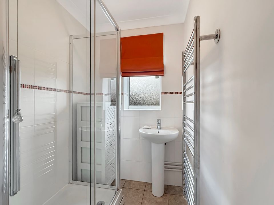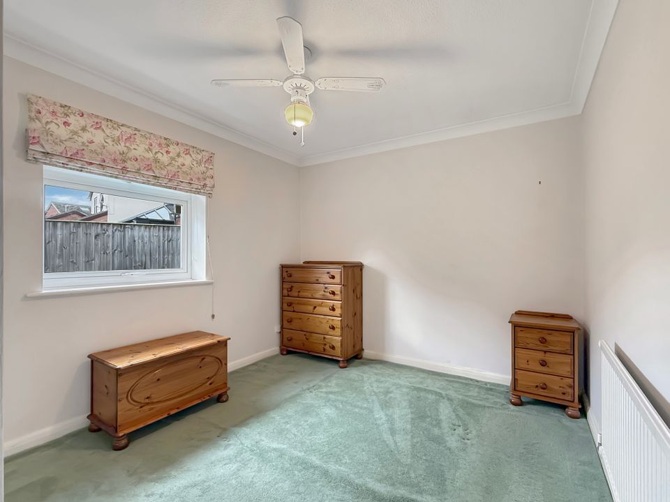 There are two well-proportioned bedrooms, both benefiting from fitted wardrobes and enjoying aspects to the front and rear respectively. The bathroom has been converted into a shower room, complemented by a separate WC, which offers the potential to combine into one larger bathroom if desired.