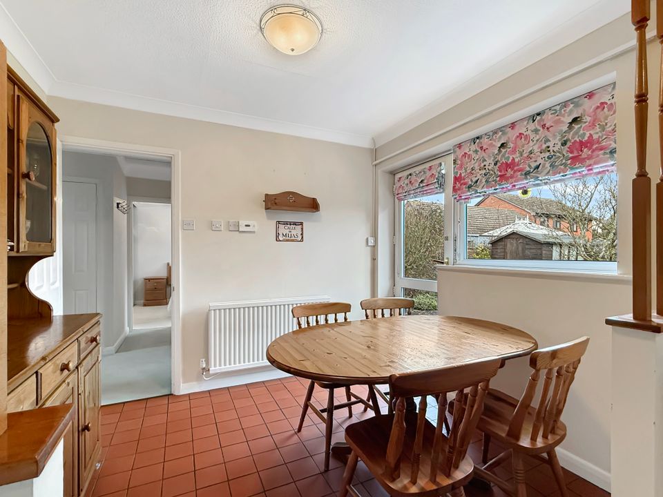 To the rear, the kitchen/dining room enjoys views over the garden and is fitted with a range of units providing ample work surfaces and space for appliances. A door provides direct access to the rear garden.