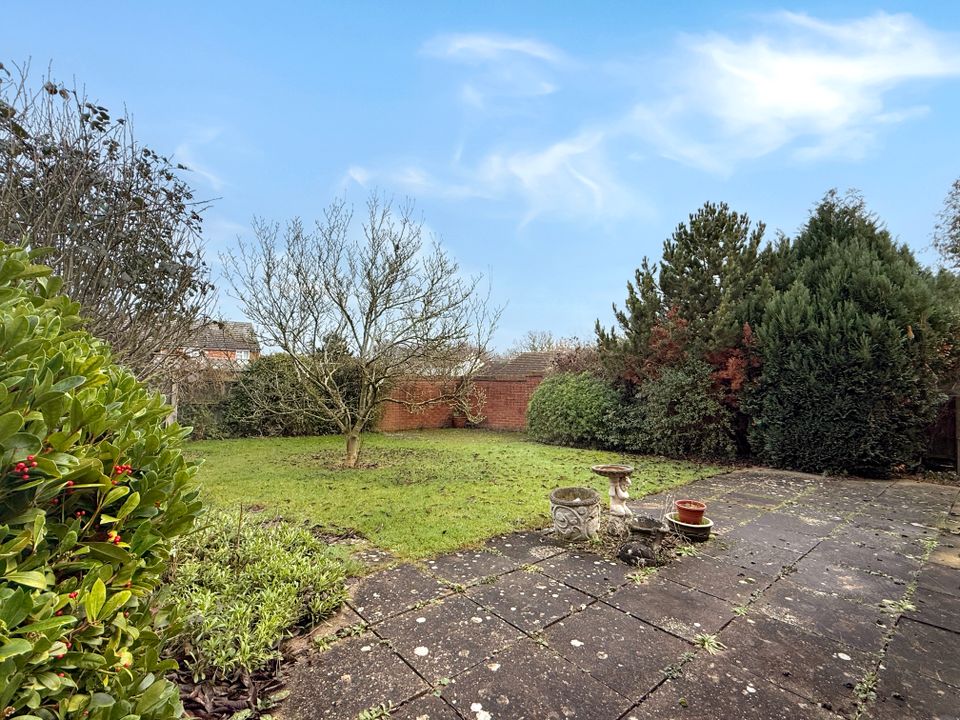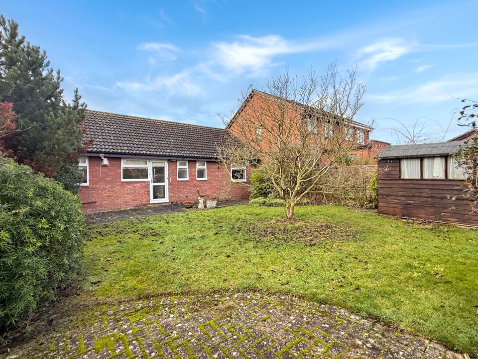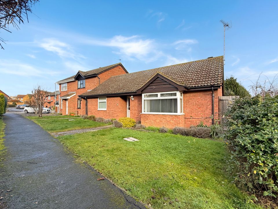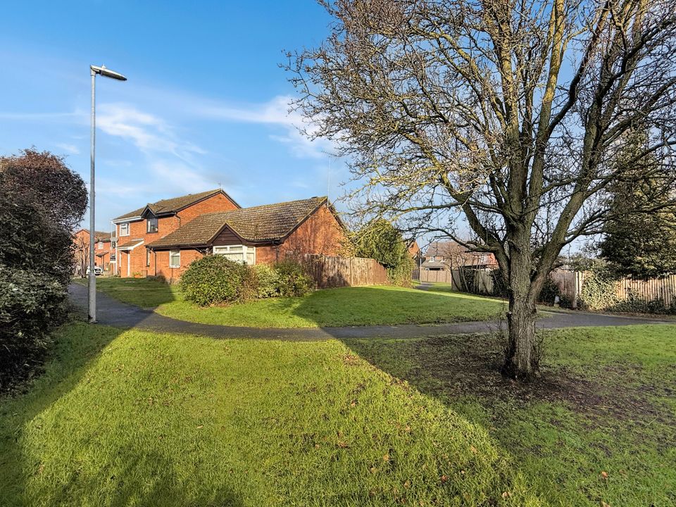 A two bedroom detached bungalow providing excellent accommodation throughout with a superb private plot siding onto a small green, pedestrianised frontage, garage en-block and driveway. No Chain.