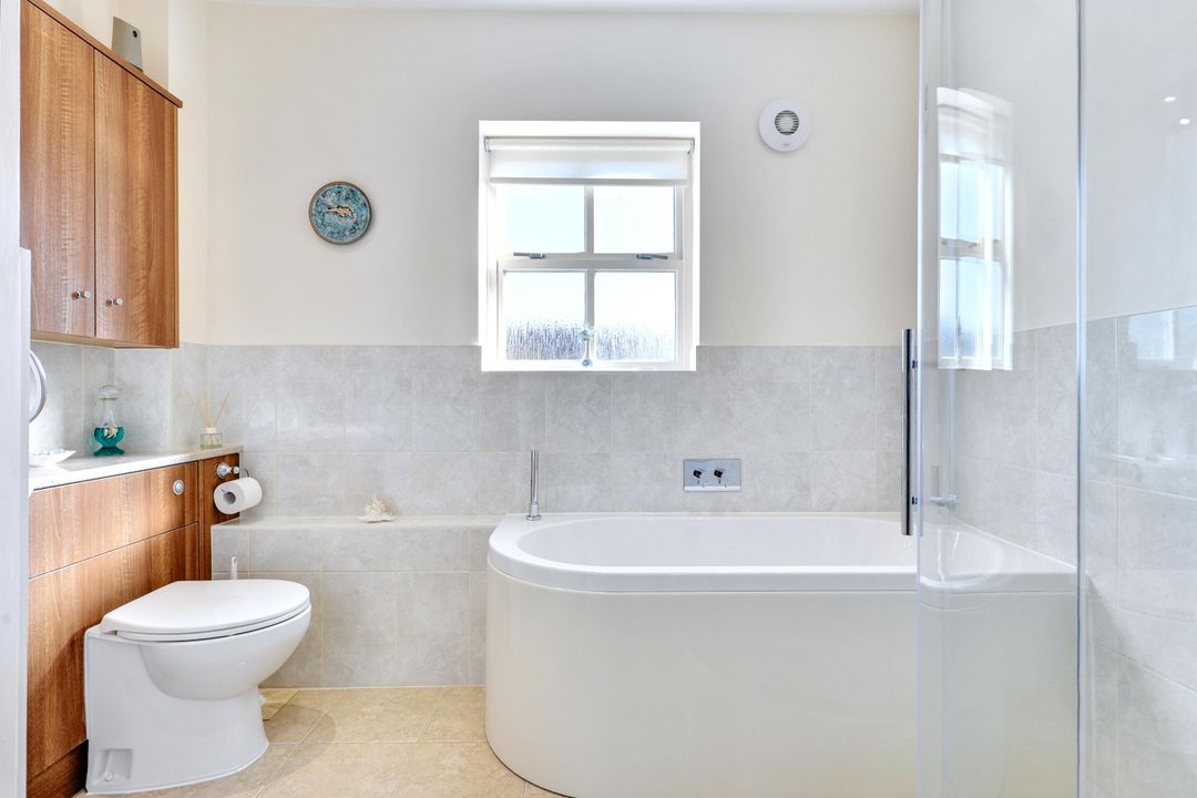 Upstairs, the first floor offers four double bedrooms, all beautifully presented and generously sized. The principal bedroom has fitted wardrobes to one wall and a luxurious refitted en suite shower room with a large shower enclosure, w.c., and hand basin. A high quality refitted family bathroom with a bath, shower enclosure, w.c., and hand basin completes the first floor accommodation.