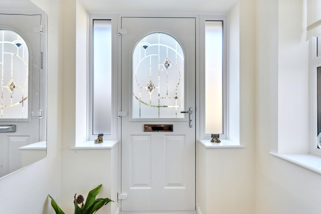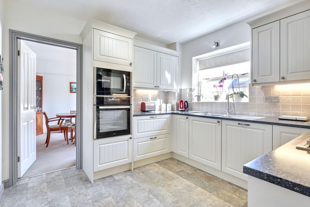 The property offers well-designed living spaces, with the ground floor comprising an entrance porch leading to a welcoming reception hall, which features stairs to the first floor, a storage cupboard, and a refitted cloakroom with a w.c. and hand basin. The sitting room is elegantly proportioned, with a beautiful modern fireplace inset with a gas fire and this flows seamlessly into the dining room, which with its patio doors, provides direct access to the rear garden, creating an ideal space for entertaining. The adjacent kitchen has recently been re-fitted with modern cabinetry set above and below the working surfaces, there is a built in oven and combination oven and microwave, a four-ring gas hob with extractor over, and an integrated dishwasher. The utility room is off the kitchen and is fitted with matching cabinetry. It has an integrated fridge/freezer, and washing machine, a door to the garage, and another out to the garden.