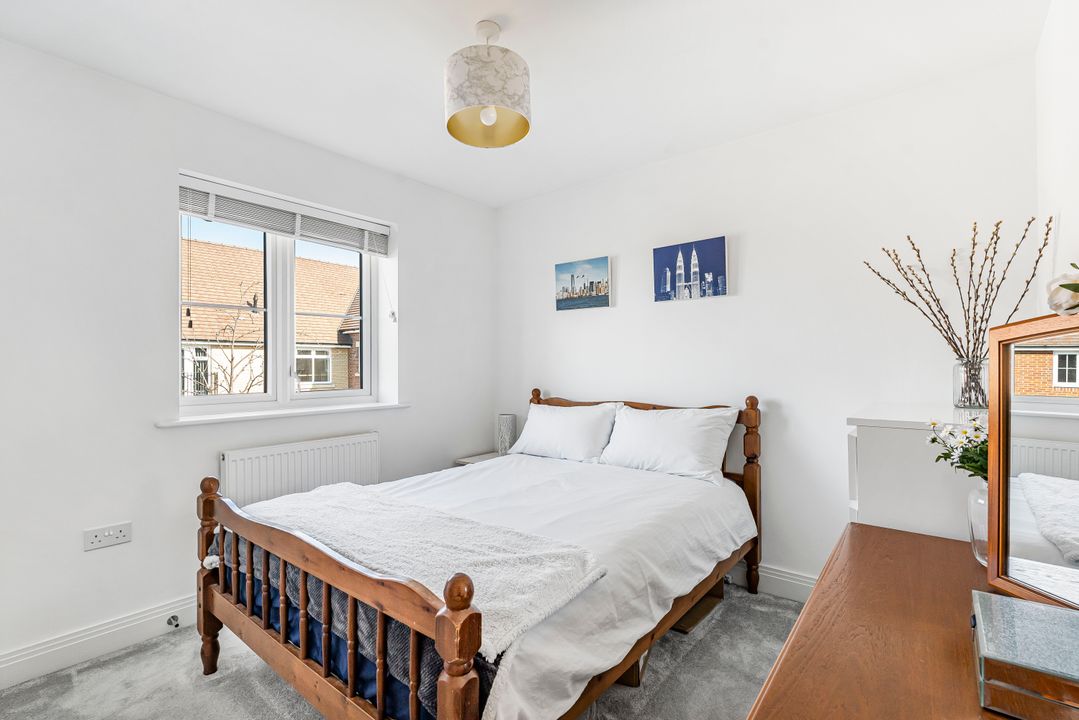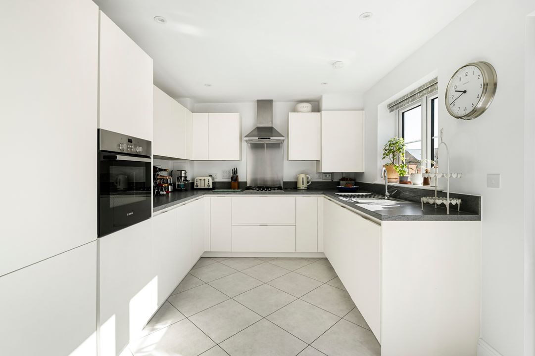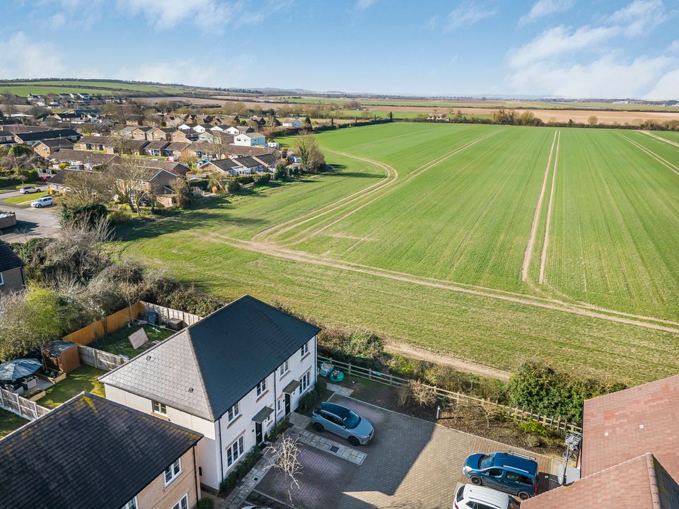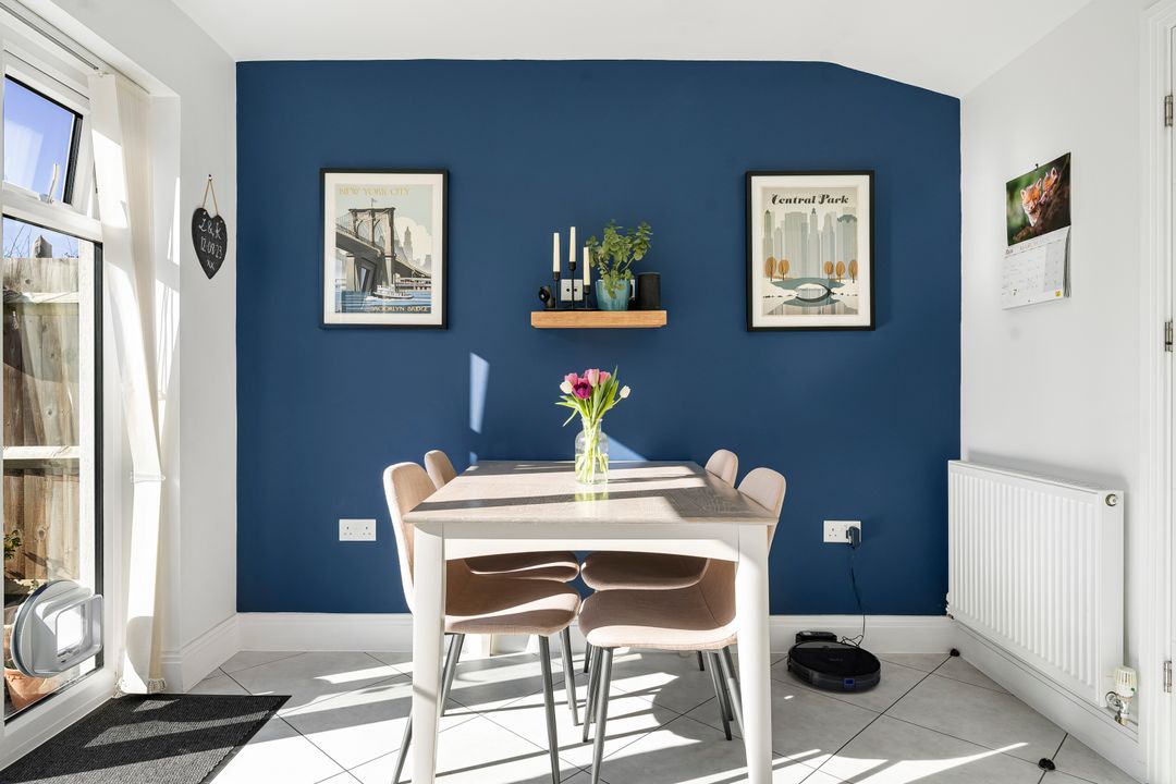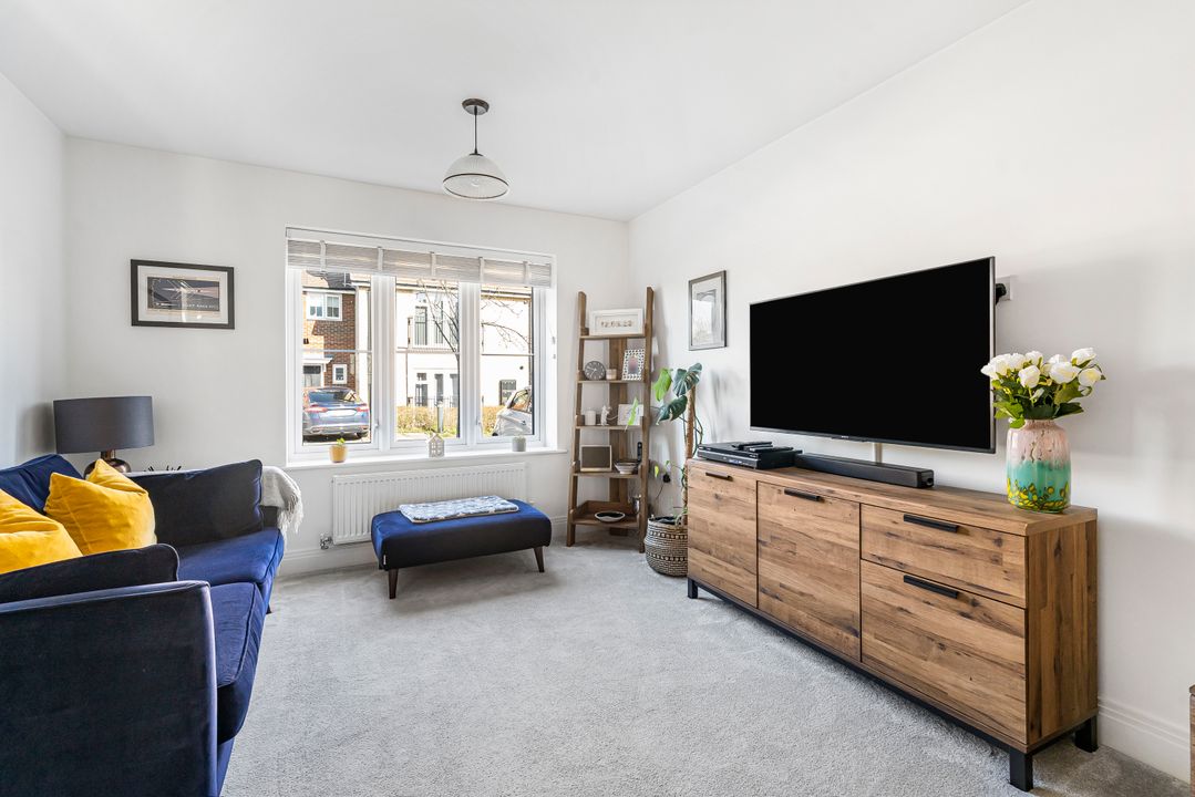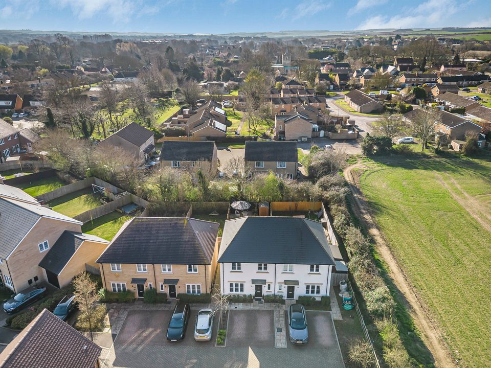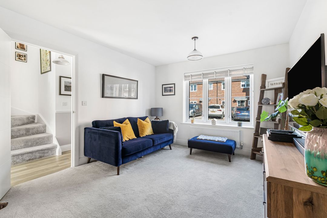 This property is located at the end of a quiet cul-de-sac, offering a peaceful and private setting in the heart of the village. To the front, a block-paved driveway provides space for two cars while a gate to the side provides pedestrian access to the rear garden. The front door opens into an entrance hall with stairs leading to the first floor. The living room sits at the front of the property, featuring a large window that fills the room with natural light.
