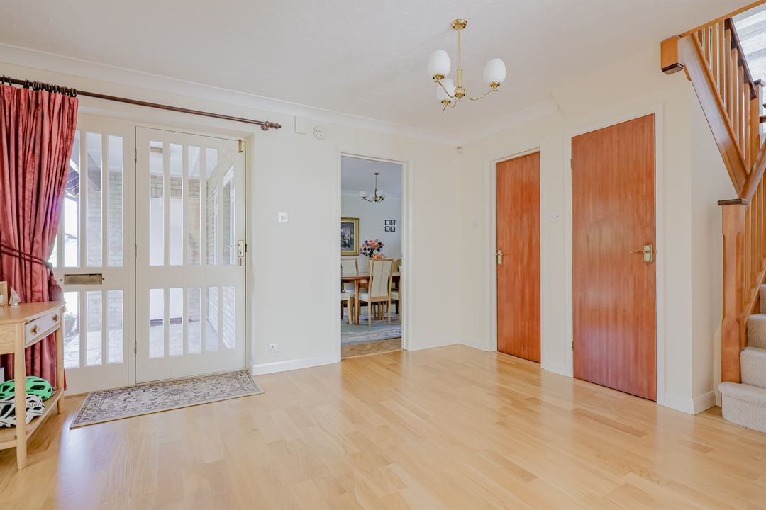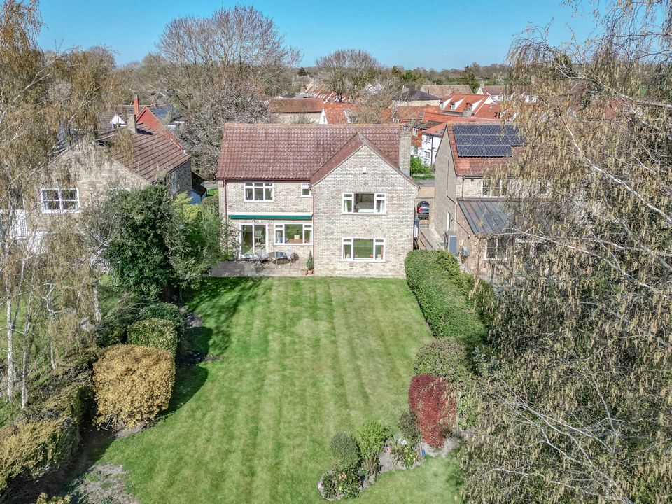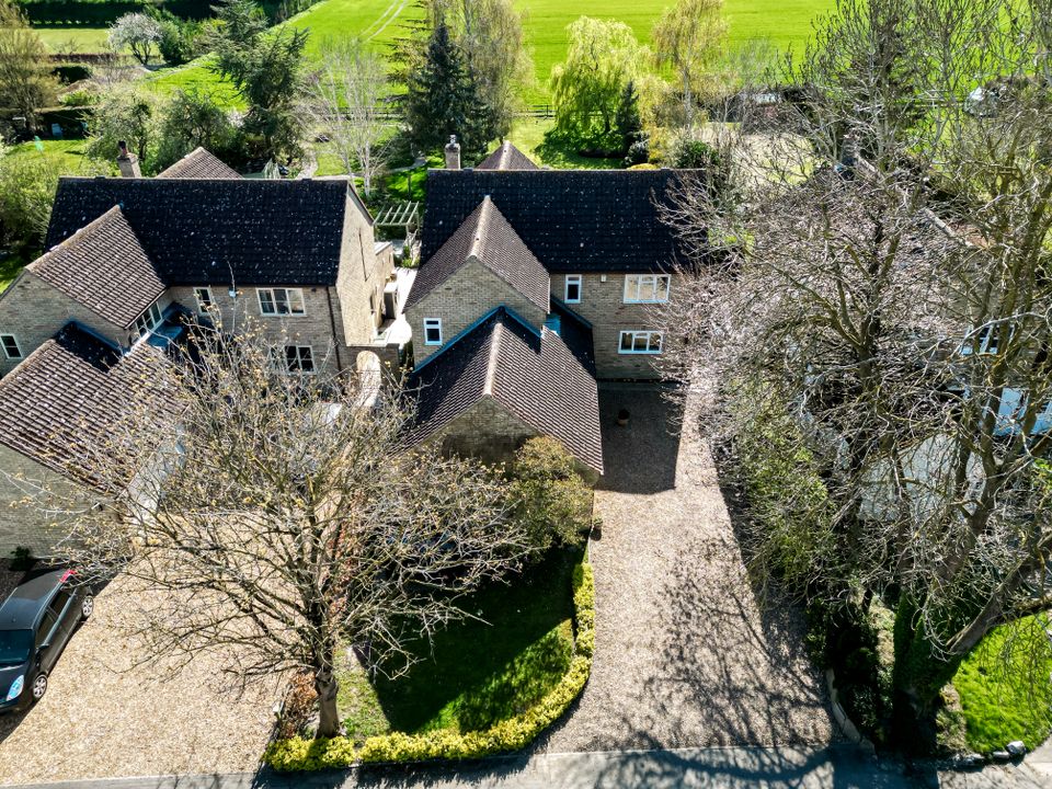 A well-proportioned four-bedroom family home set over two floors, featuring three bathrooms (including two en suites), mature south-facing gardens, and excellent potential for extension. Quiet village location with double garage and off-road parking.