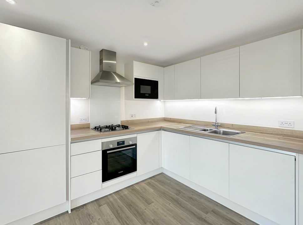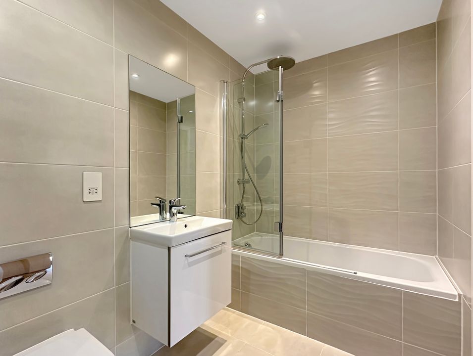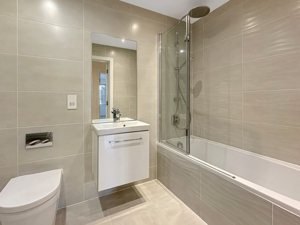 The heart of the home is the spacious, open-plan kitchen/dining/living room, complete with quality fitted kitchen units and integrated Bosch appliances. This seamless blend of space is perfect for both relaxing and entertaining. The property has excellent storage solutions and features wood-effect flooring in all rooms except the sleek, tiled bathroom. The bathroom has a contemporary three-piece suite with a tiled panelled bath, floating wash basin with ample storage beneath, and a concealed cistern WC.