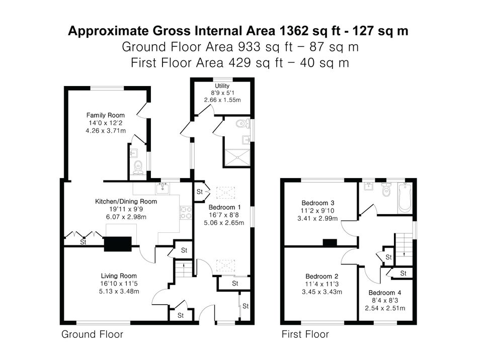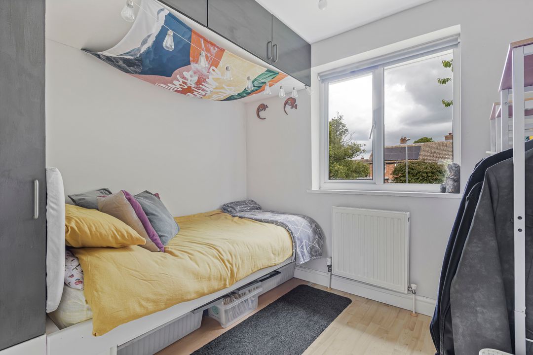 The first floor offers three bedrooms, two generous doubles and a large single, each with ample natural light and some with fitted storage.