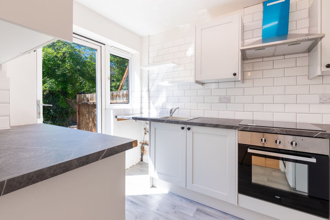 A beautifully presented three-bedroom home with a brand-new kitchen and bathroom, spacious living/dining room, enclosed garden, on-street parking and garage en bloc. Offered with no onward chain.
