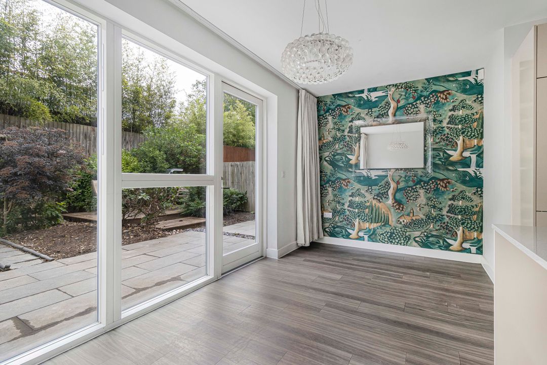 In addition to the private first-floor terrace, the home benefits from a rear garden accessed via the kitchen/dining area. There is a paved patio area, a range of trees, shrubs, and bushes, as well as a decked area, perfect for catching the sun and enjoying outdoor relaxation. The property also includes driveway parking in front of the garage.