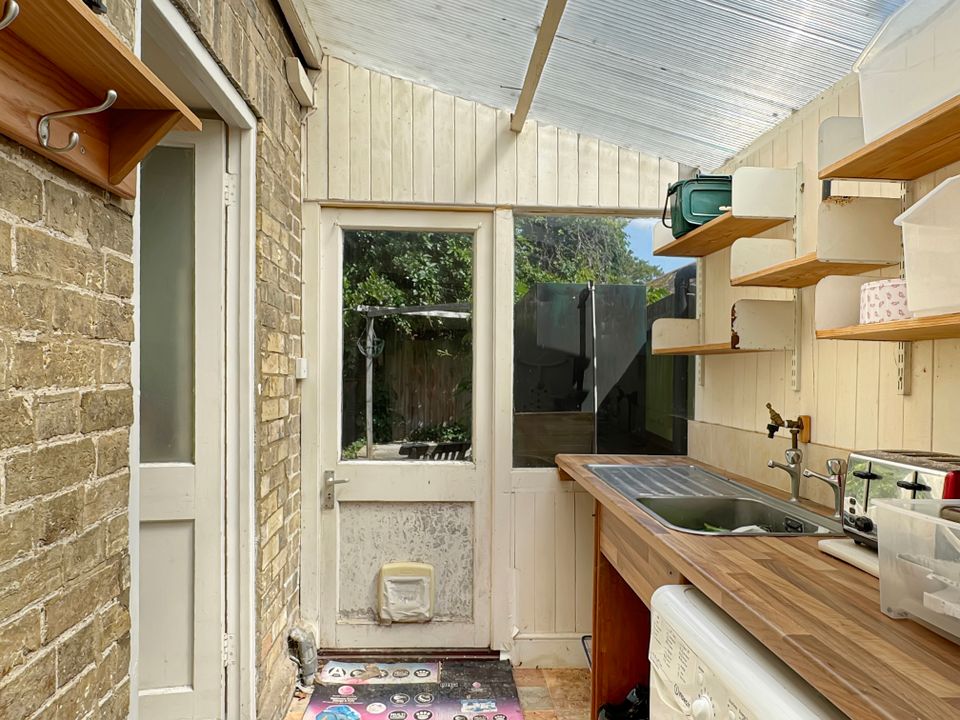 Set behind a neat picket fence, the front garden is laid to lawn with a path leading to the front door. There is a small entrance hall with the staircase rising to the first floor, and the sitting room to the front of the building is generous with ample space for sofas and chairs. The kitchen dining room extends across the rear of the building and is fitted with a range of floor and wall mounted cabinets. There are double doors leading out to the garden, a built in cupboard that extends under the staircase, a double oven and hob with extractor over, and space for a dishwasher and fridge/freezer. The adjacent lean-to utility/store has doors giving access from front to back, and houses the washing machine. There is also a second sink and drainer.