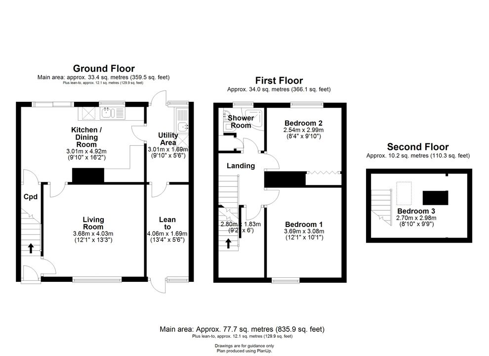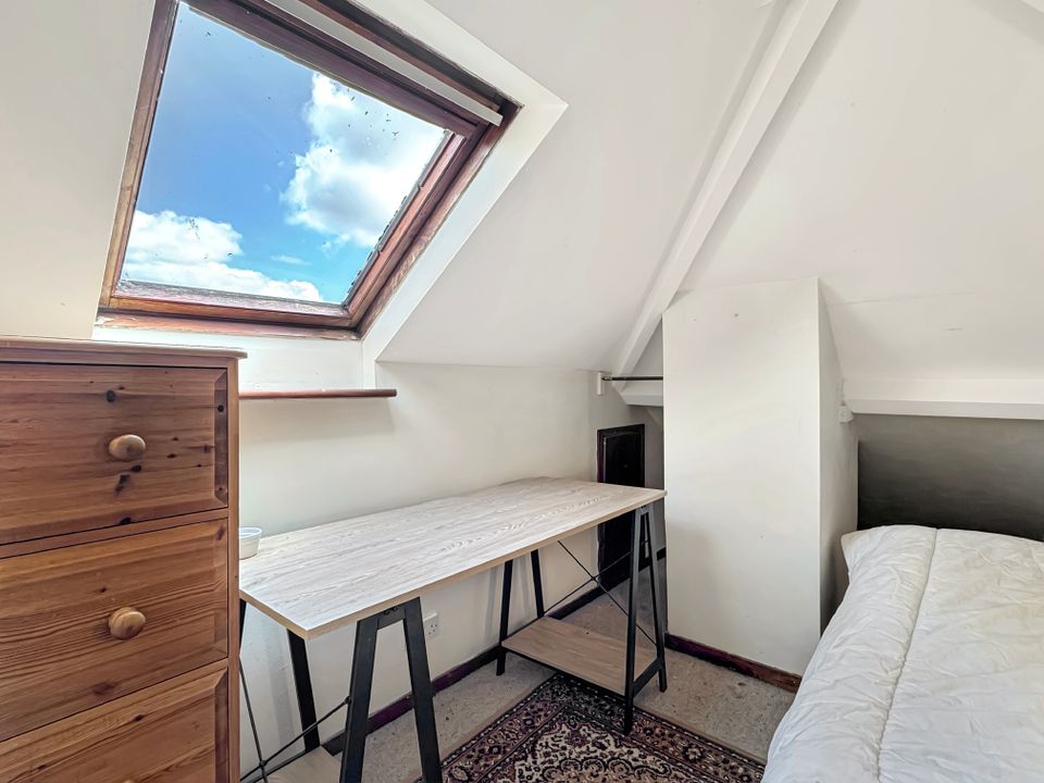 On the first floor, the landing opens to two double bedrooms and a shower room fitted with a shower enclosure, w.c., and hand basin. A second staircase leads up to a useful loft room.