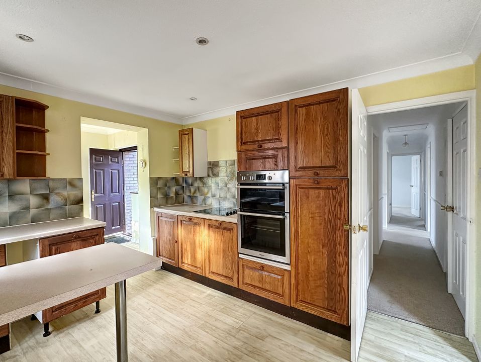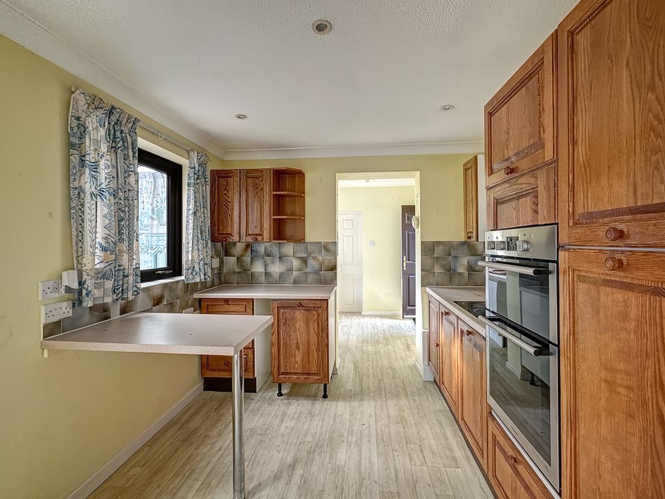 The kitchen has a double electric oven, a ceramic hob, a range of wall and base units, generous work surfaces, and a breakfast bar. Off the kitchen, a utility room offers additional storage and plumbing for a washing machine. A double-glazed conservatory is also accessed from the kitchen, providing an ideal spot to relax and enjoy garden views.