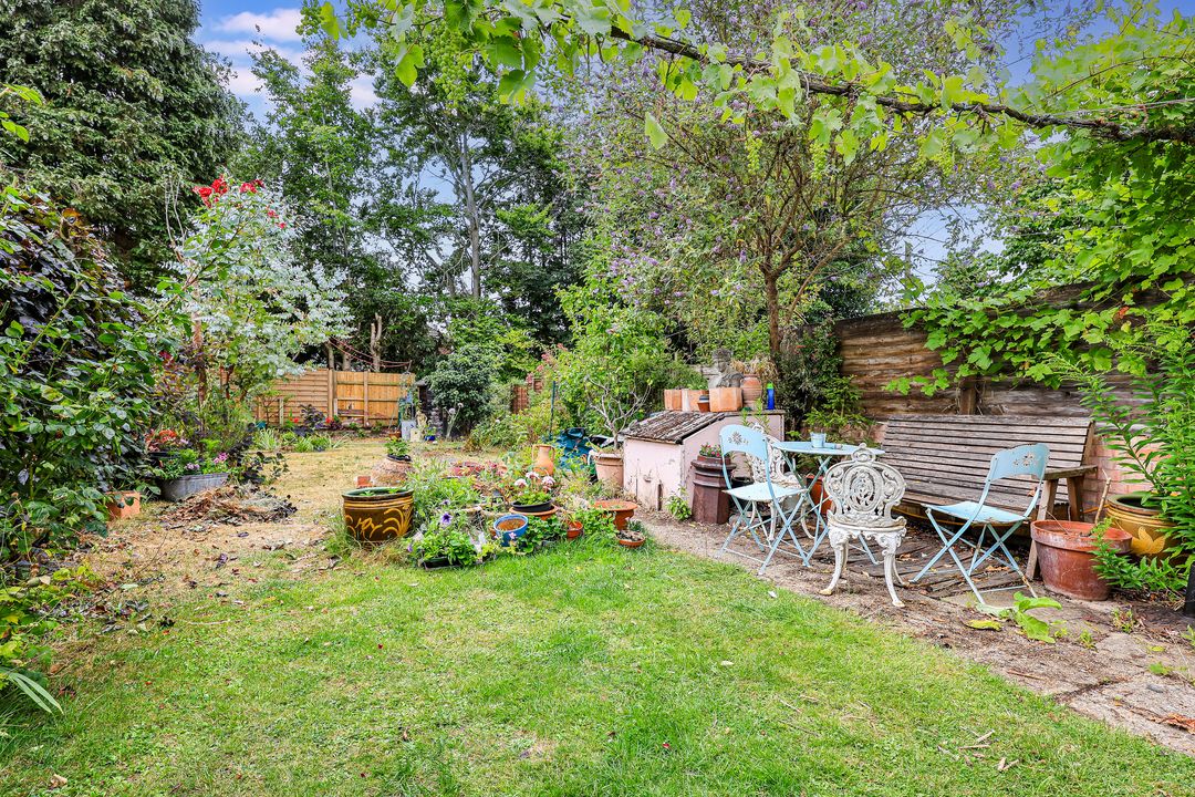 Externally, the property benefits from a paved front driveway with off-street parking. The rear garden is a charming and mature outdoor space with a lawn, planting beds, and a patio seating area—ideal for outdoor dining and leisure. The garden is south-facing and approximately 60 feet in length, and also includes fruiting trees, grapevines, and flower beds stocked with David Austin roses and other perennials.
