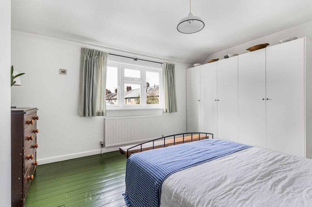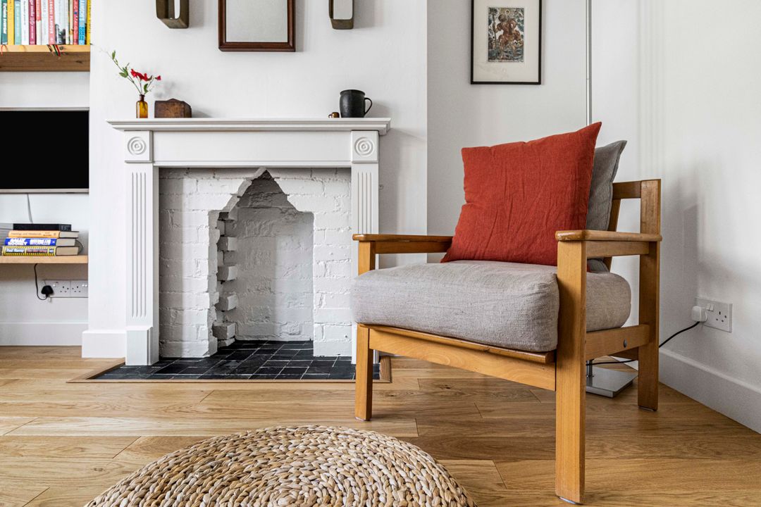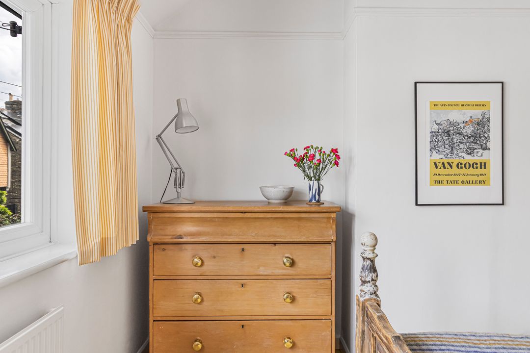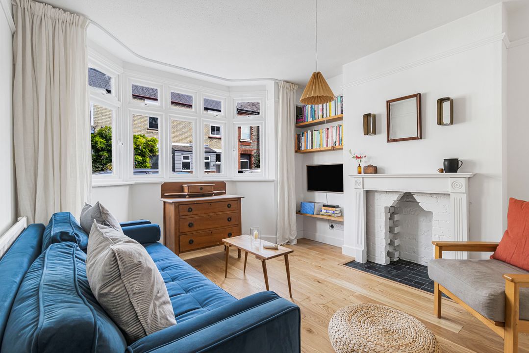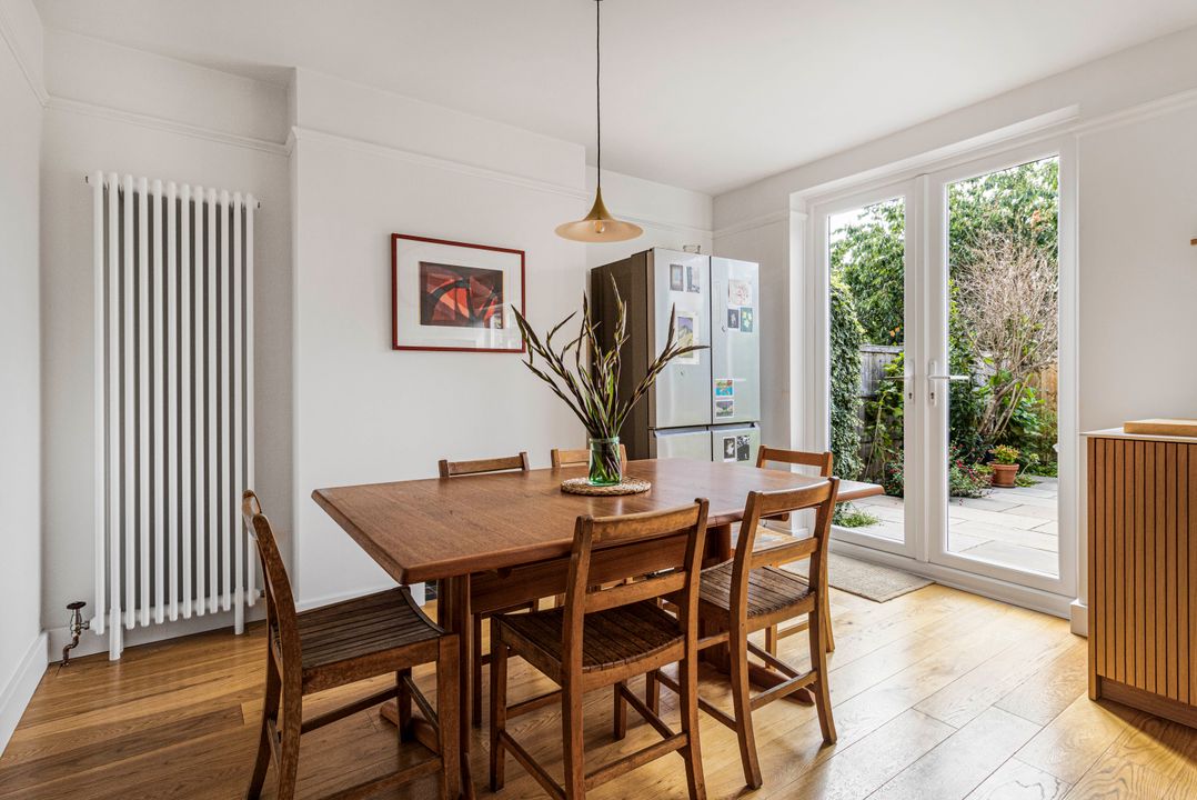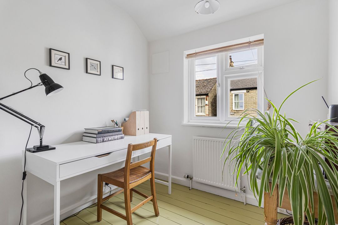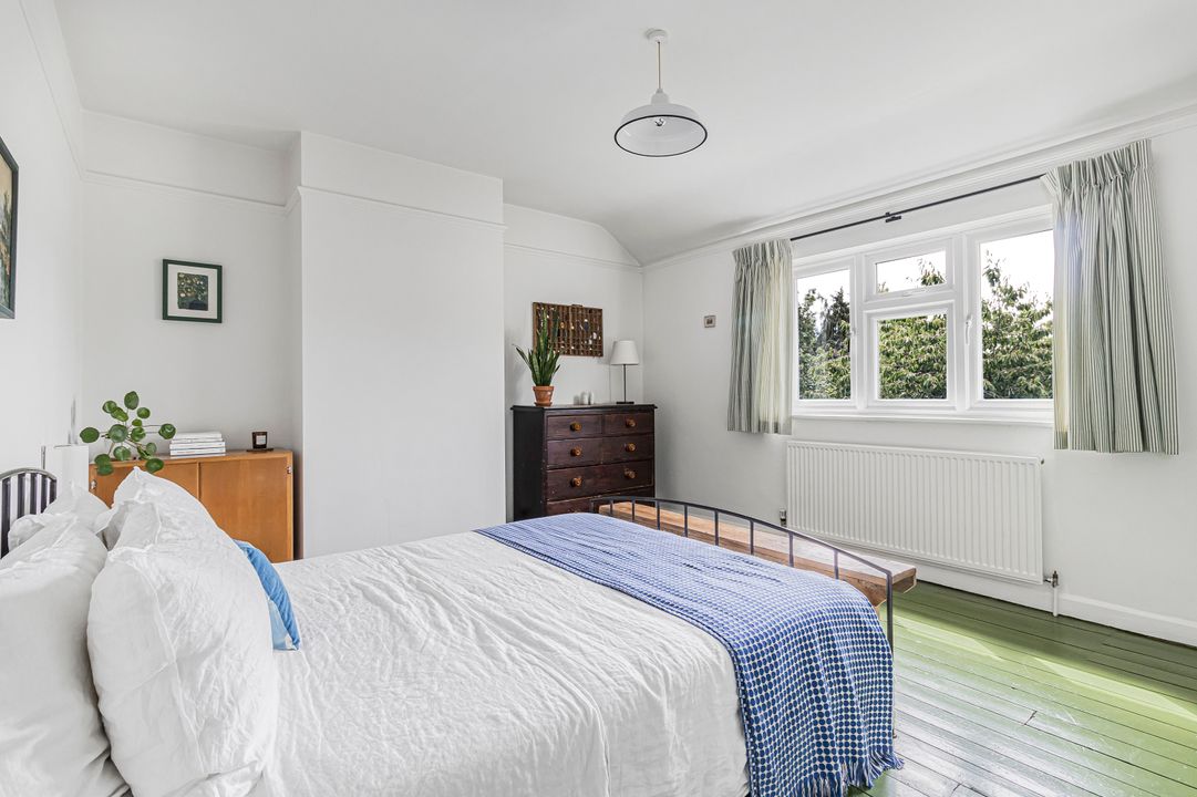 Upstairs, the first floor offers three bedrooms, including a generous principal bedroom with fitted wardrobes and a second spacious double. A further bedroom provides an ideal nursery, home office or guest room. All this is complemented by a chic, well-designed bathroom (also fully renovated in 2024).