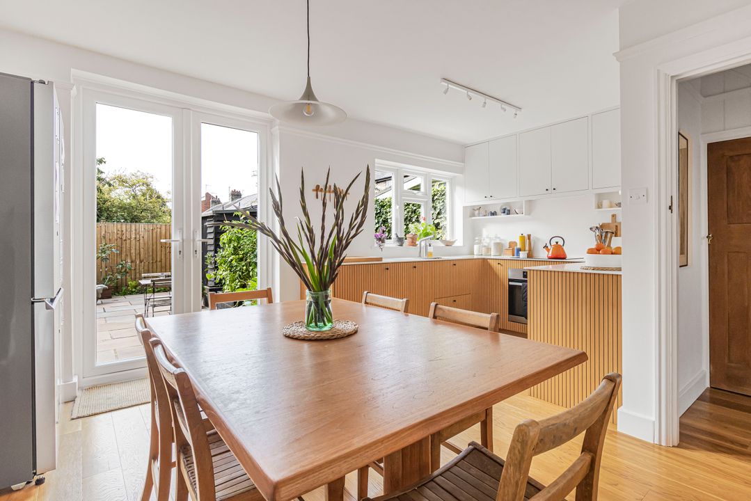 The ground floor features a welcoming living room to the front, with a charming bay window creating a bright and comfortable space. To the rear lies a stunning combined dining room and kitchen (fully renovated in 2024), finished to a high standard with sleek cabinetry, quality integrated appliances and ample storage. This is a wonderful room for entertaining and everyday living, with direct access to the garden.