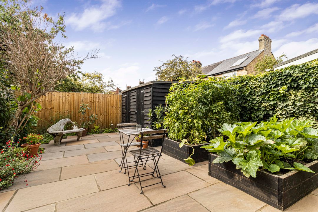 The private, south-facing garden is a standout feature, designed with both relaxation and practicality in mind. With a smart paved terrace, raised beds for planting, and mature greenery, it provides the perfect setting for summer dining, entertaining or simply enjoying a quiet morning coffee.