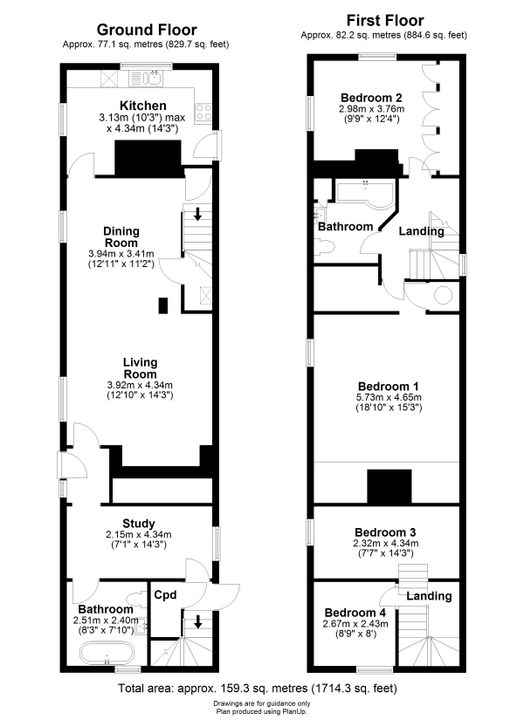 The accommodation extends to four bedrooms, each independently accessed, making the layout particularly versatile. On the ground floor, the cottage offers a welcoming living room with character features, opening to a separate dining area. The adjacent country kitchen is fitted with modern cabinets set above and below the working surfaces, and there is appliance space. A study and a bathroom at the end of the cottage complete the ground floor accommodation. Upstairs are four bedrooms, the two larger doubles are arranged around a landing with a family bathroom, and a second staircase provides access to the two smaller rooms.