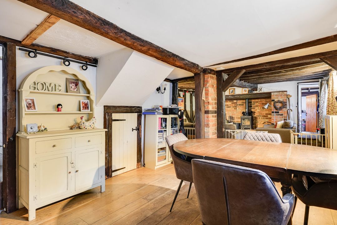 A charming 16th century, Grade II Listed thatched cottage occupying a generous plot of approximately 0.97 acres. The property combines period character with comfortable living spaces and has four bedrooms, each individually accessed over two landings. Rich in original features, the property showcases exposed beams throughout and has a beautiful inglenook fireplace with log burner at the heart of the sitting room, creating a warm and inviting focal point.