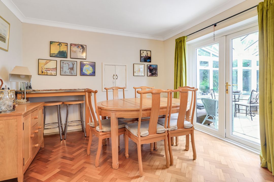 The ground floor is arranged around a welcoming entrance hall, with a large open-plan living and dining room that enjoys dual-aspect light and direct access into a large conservatory overlooking the garden. The kitchen is fitted with a range of sleek contemporary units with integrated appliances, and this opens to a generous utility room, which in turn gives access to the front and rear garden and has a personal door into the garage. A cloakroom completes the ground floor accommodation.