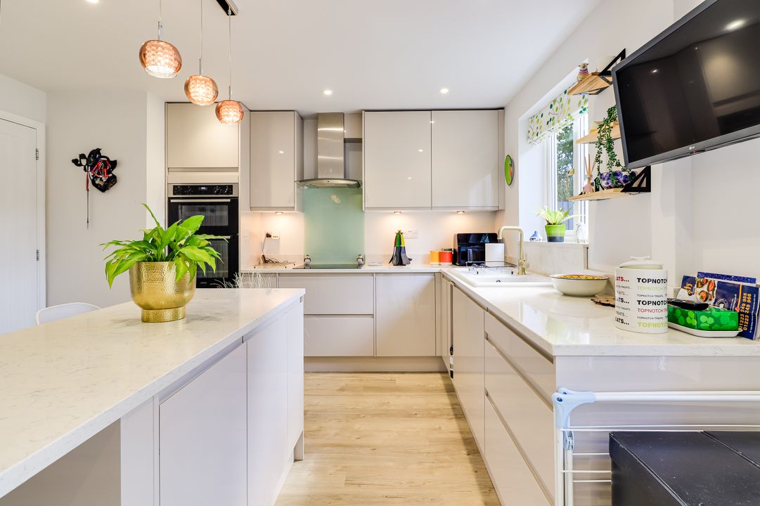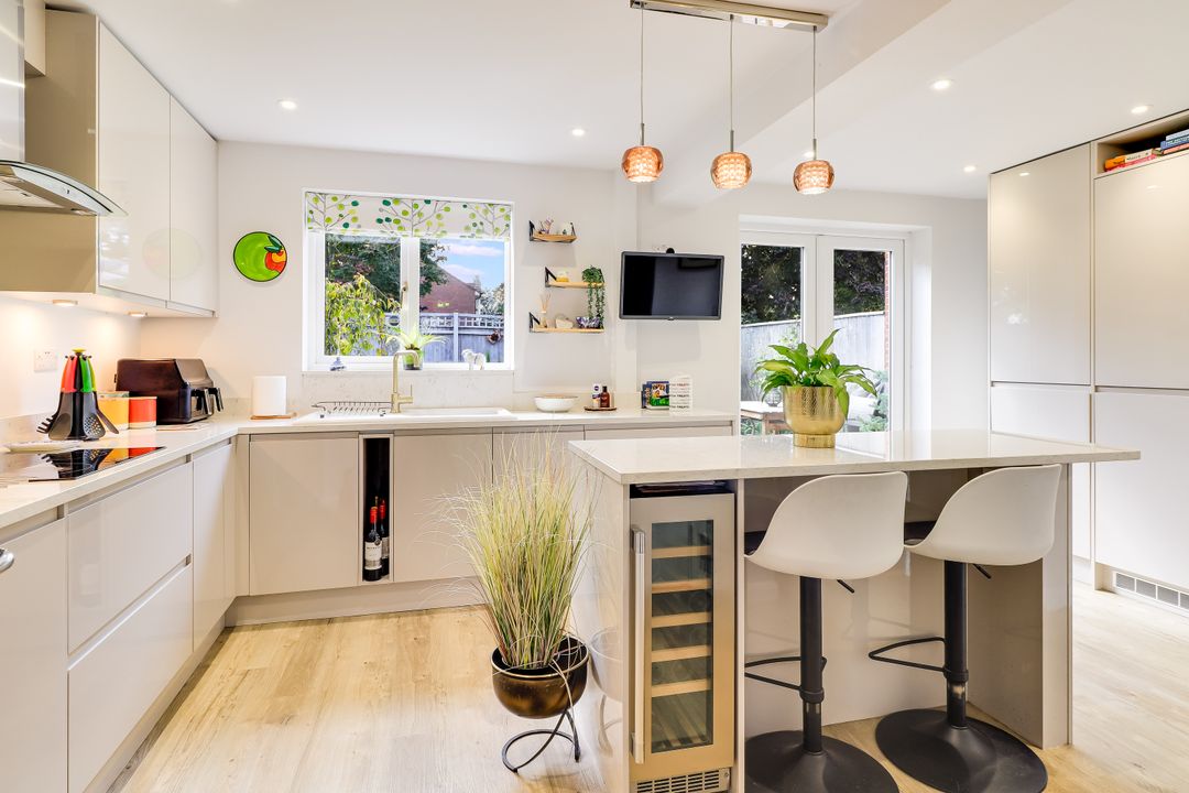 The first floor has been extended and more recently updated. There are four bedrooms, a modern family bathroom with overhead shower, a main bedroom with fitted wardrobes, and a stylish re-fitted en-suite shower room.
