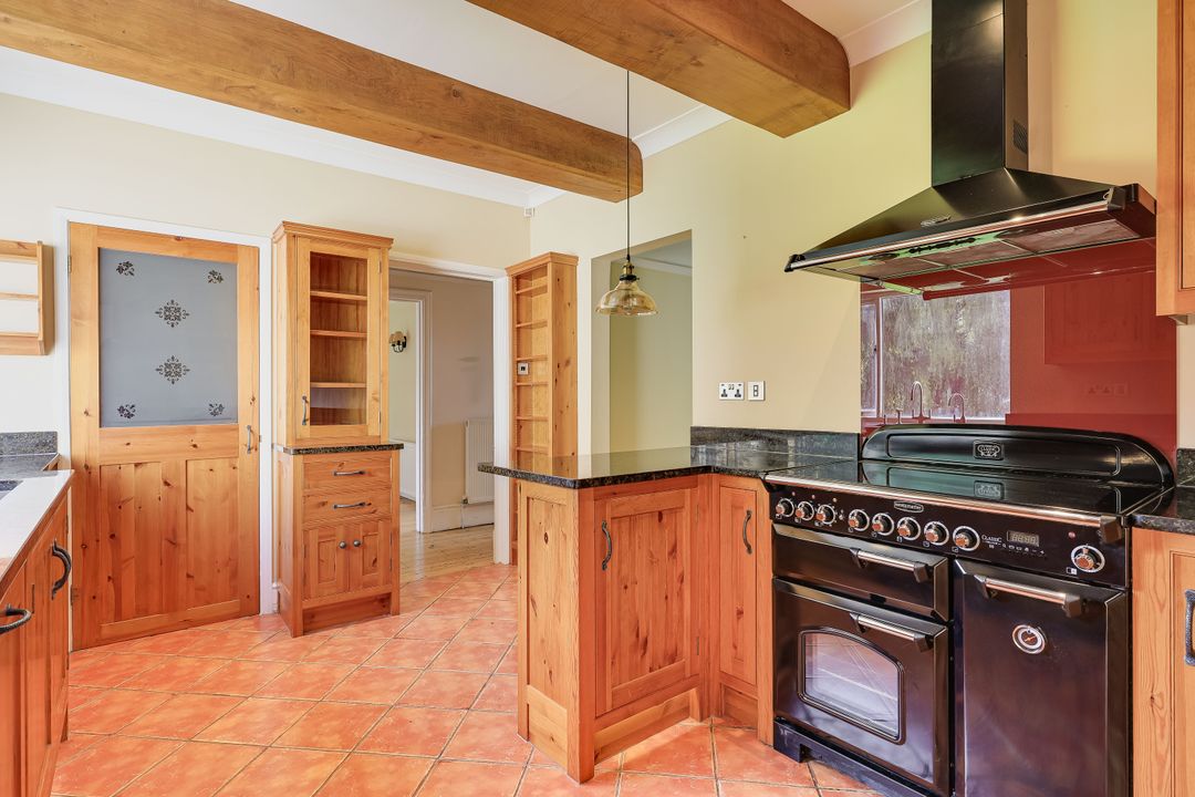 The ground floor is approached through a welcoming entrance hall that leads to three elegant reception rooms: a formal dining room, a spacious living room with period proportions, and a versatile family room at the heart of the home. The kitchen comprises bespoke cabinetry, granite work surfaces, and high-end appliances, including a Rangemaster induction cooker, integrated microwave, dishwasher, and a boiling water tap. The adjoining pantry is fitted with matching bespoke cabinetry, complete with cupboards and wine racks. To the rear of the house lies a boot room, a cloakroom, and a bright garden room that opens directly to the grounds, making this part of the house particularly well suited to family life. The ground floor also benefits from direct access to the tandem garage, which can accommodate three vehicles. The garage is fitted with a remote control door, a mechanics pit, and an EV charger, offering excellent space for storage or hobbies.