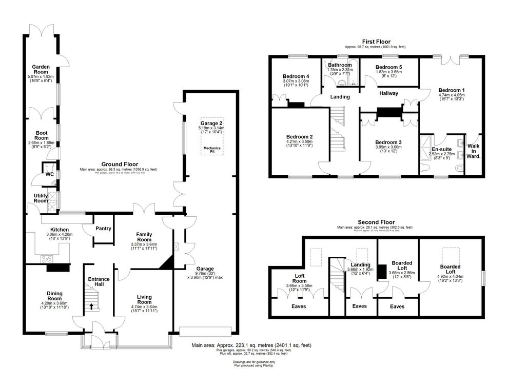 On the first floor, there are five bedrooms, including a superb principal suite with a Juliette balcony overlooking the garden, an en suite shower room, and a walk-in wardrobe. Two further generous double bedrooms and two additional bedrooms offer excellent flexibility for families, guests, or working from home. A family bathroom serves the remaining bedrooms.