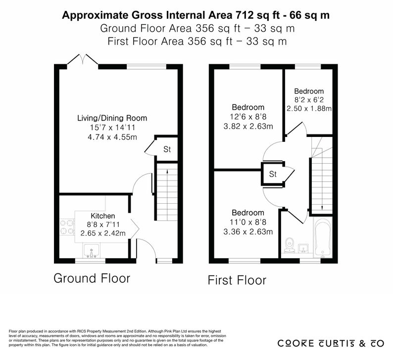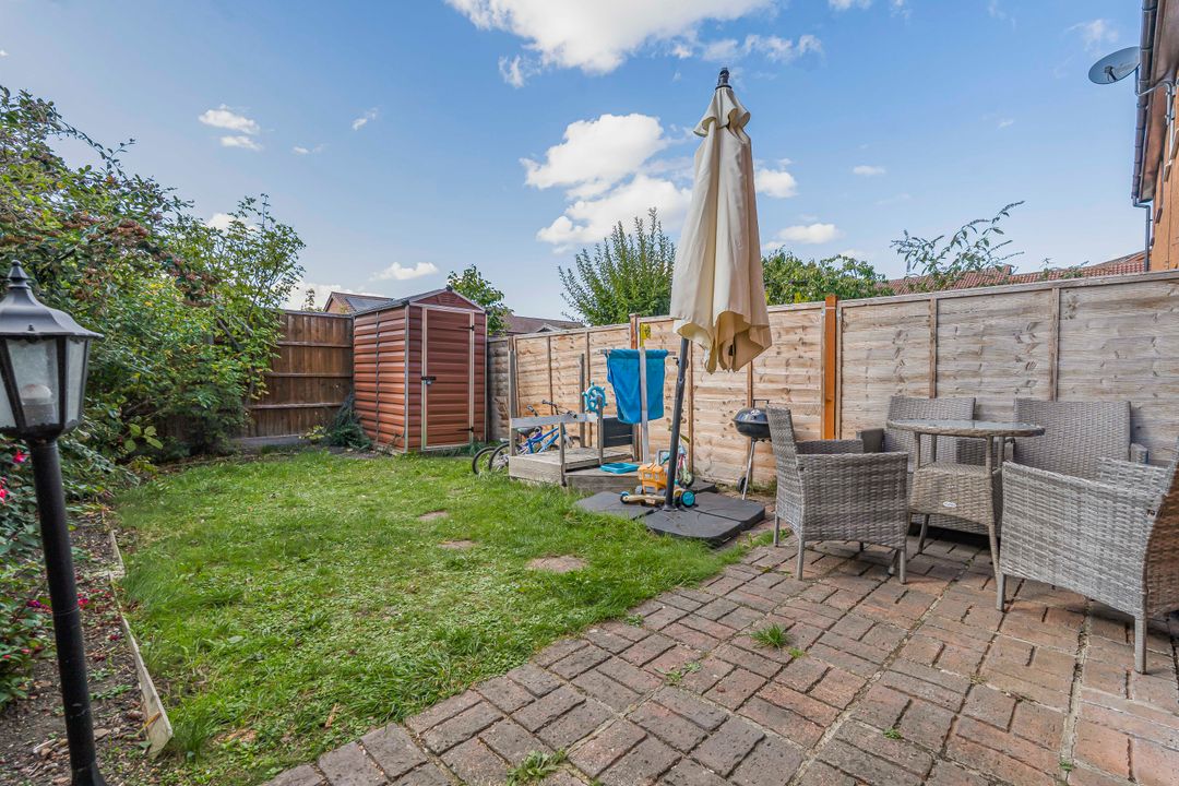 Outside, the front garden is laid to lawn with a path to the entrance, while the rear garden is a real highlight fully enclosed, attractively landscaped and featuring a lawn, plant and shrub borders, a brick patio seating area and timber shed. A gate provides direct access to the property’s allocated off-road parking.