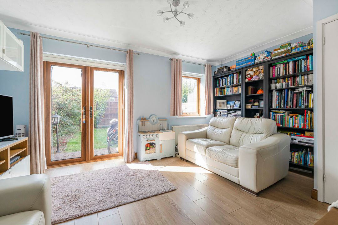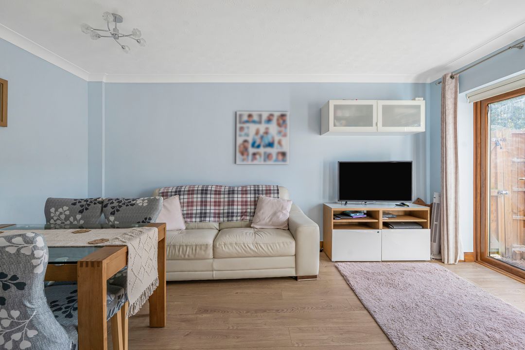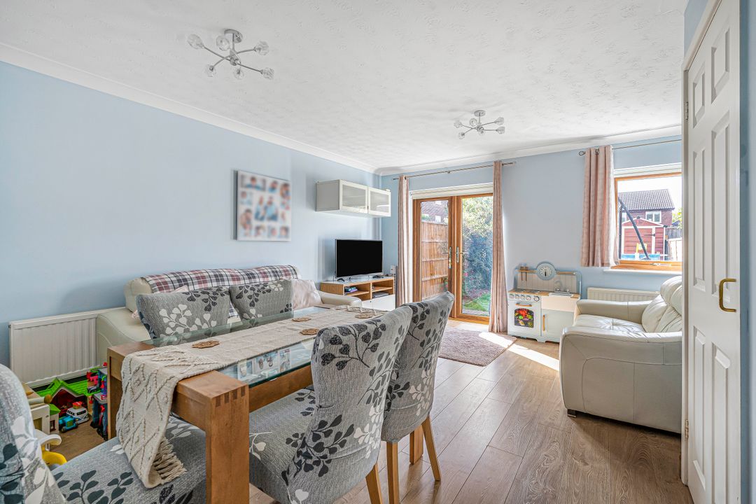 To the rear, the open-plan dining/living room stretches across the width of the home. With French doors and a large window framing views of the garden, the room is filled with natural light and provides plenty of space for both everyday living and entertaining. An understairs cupboard offers handy additional storage.