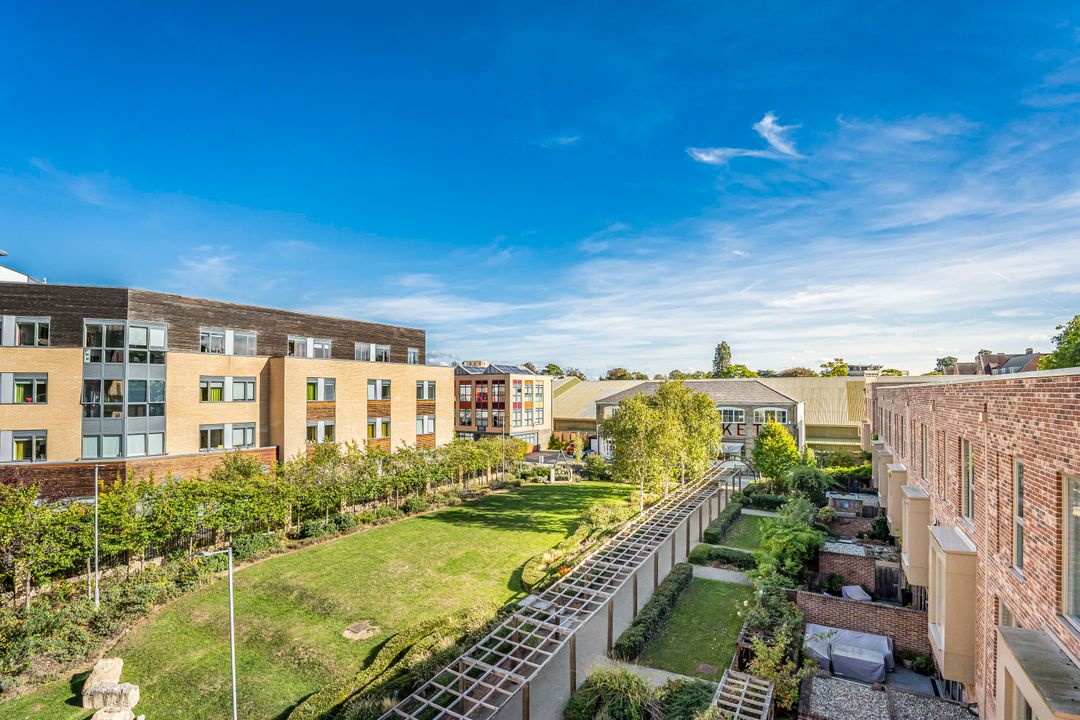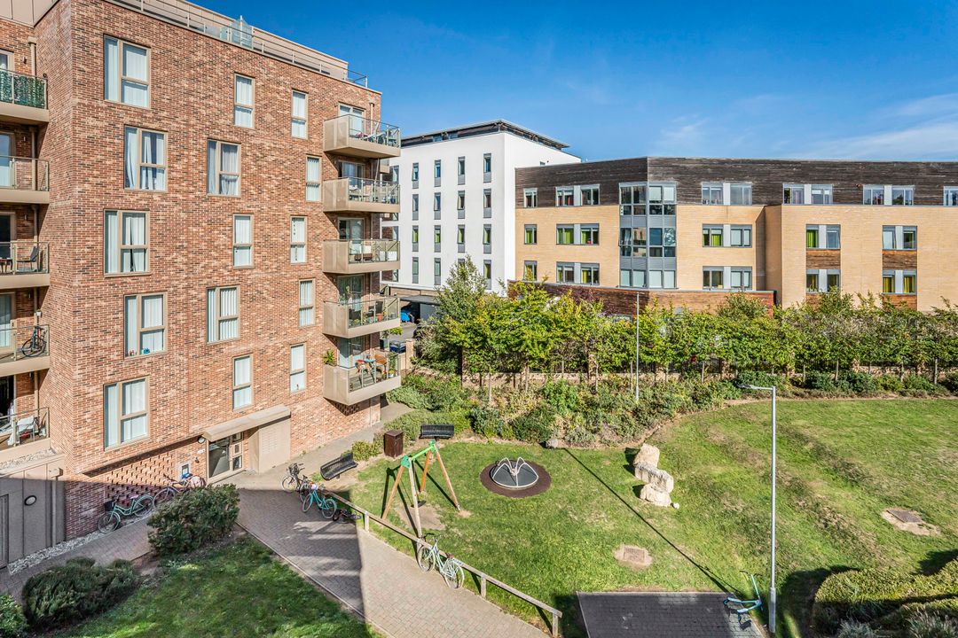 The development is set within beautifully maintained communal gardens, with large lawns, landscaped planting, and mature trees. Residents also enjoy the use of a children’s play area, creating a welcoming and family-friendly environment. A private pathway leads directly to Purbeck Road, passing the popular Cambridge Cookery School Bistro & Café, before linking to Hills Road adjacent to Hills Road Sixth Form College.