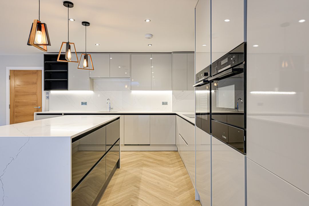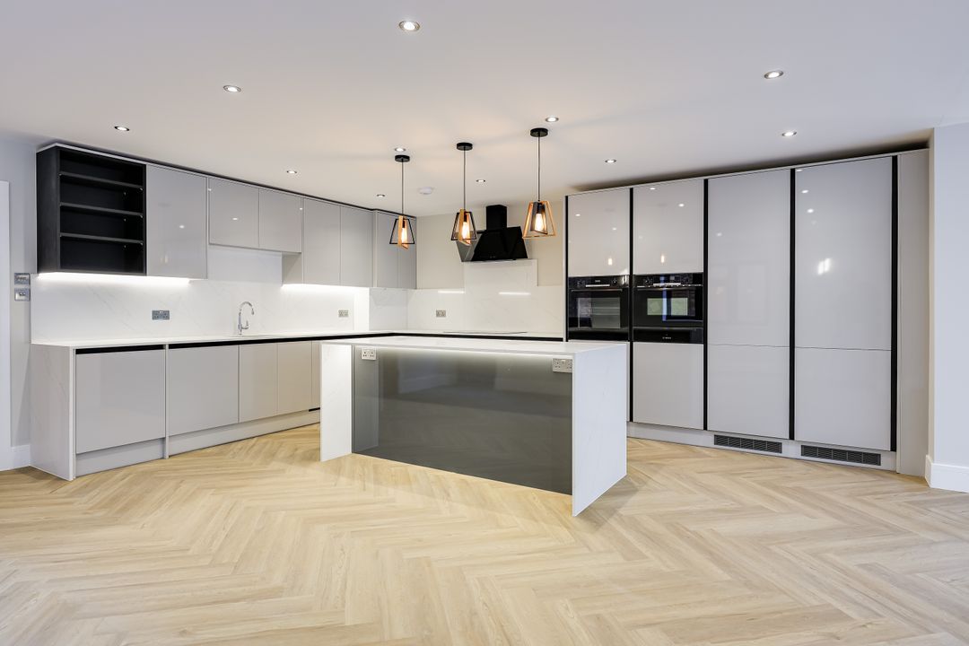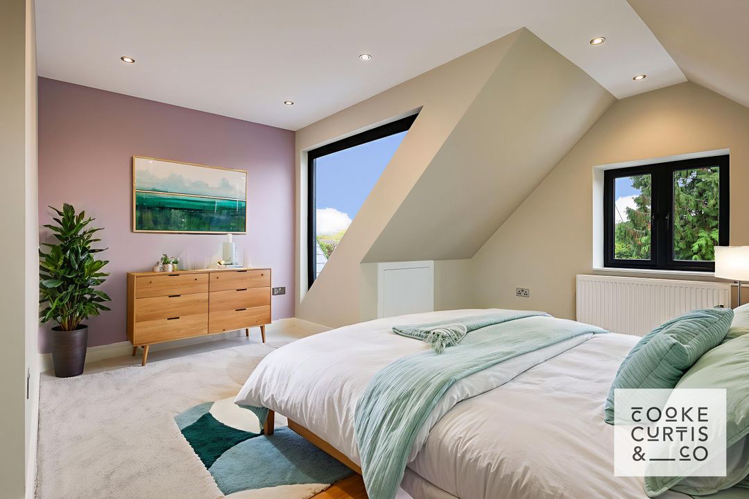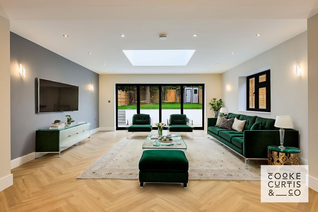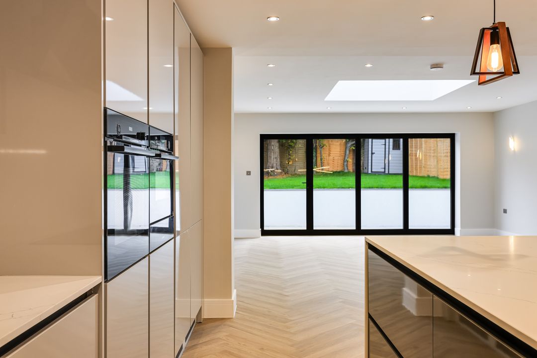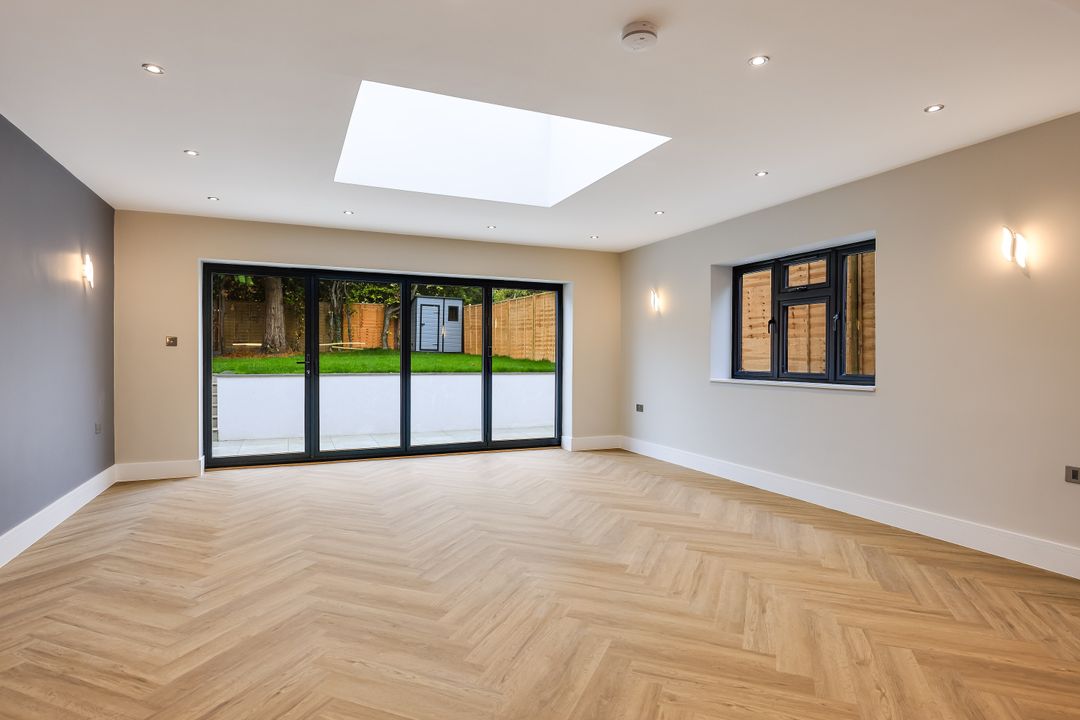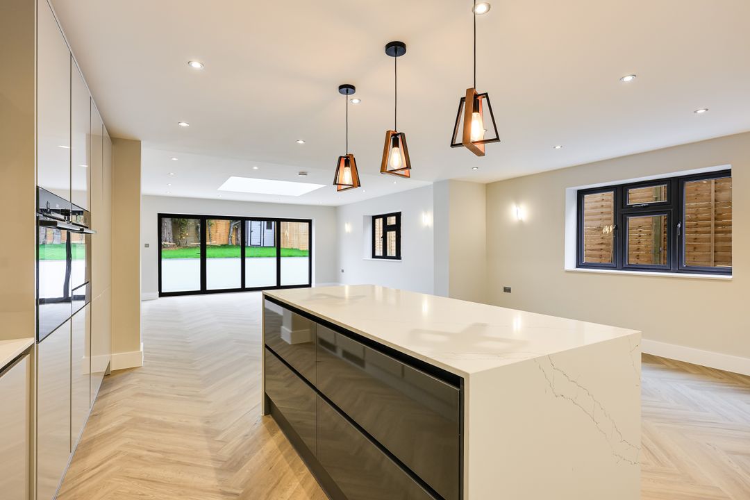 The house has been carefully designed with modern family life in mind, providing over 2,260 sqft / 210 sqm of stylish, energy-efficient accommodation across three floors. The ground floor offers an impressive open-plan kitchen/dining/family room with a feature roof lantern and full-width aluminium bi-fold doors opening onto a landscaped garden. A separate sitting room to the front provides a quieter retreat, while a welcoming entrance hall and ground-floor cloakroom complete the layout.