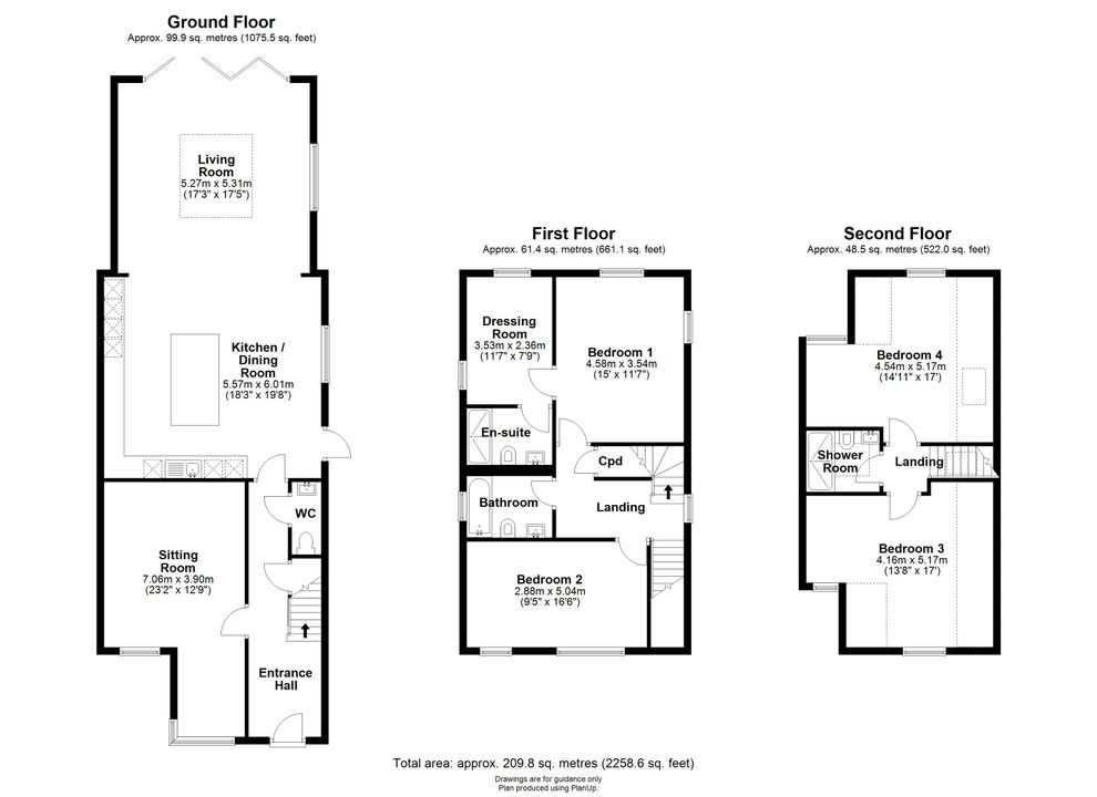 Upstairs, the first floor features a superb principal bedroom with dressing room and en-suite, a further double bedroom, and a family bathroom. The second floor provides two generous double bedrooms and a stylish shower room, ideal for older children or guests.
