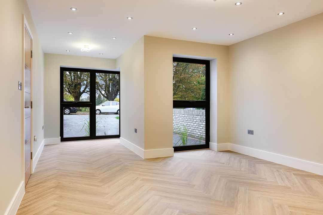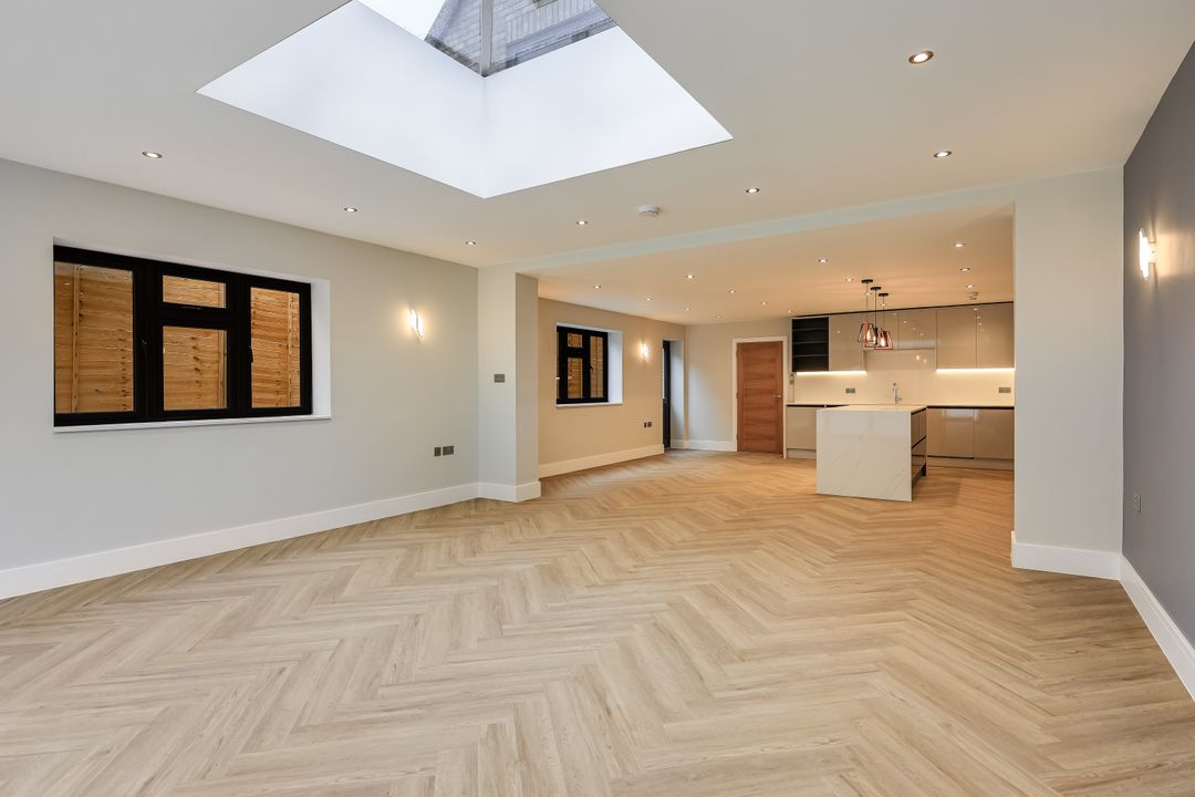 Luxury Vinyl Tile (LVT) herringbone flooring to ground floor