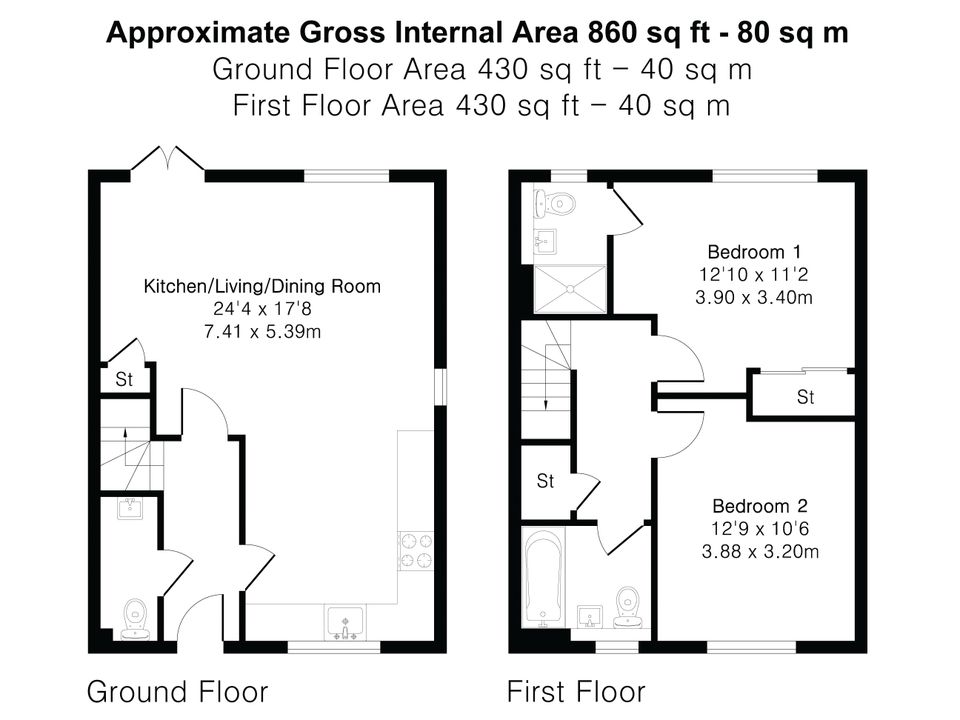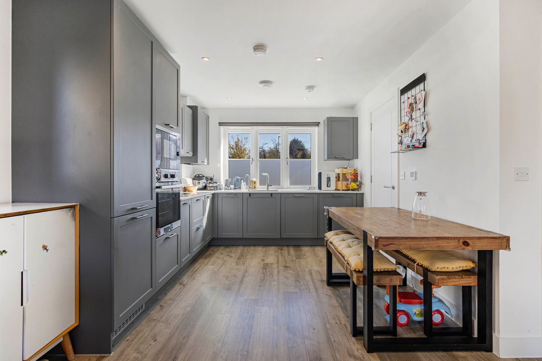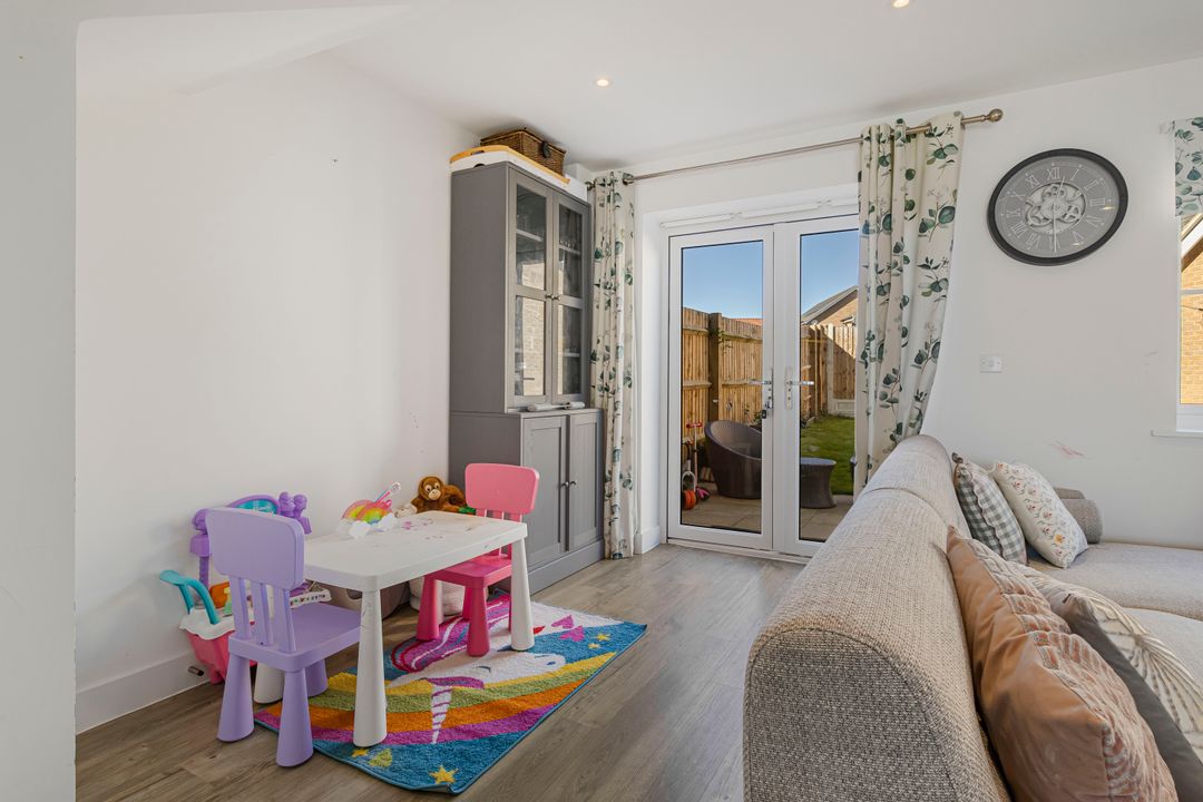 Upstairs, there are two well-proportioned double bedrooms, the primary bedroom features an en-suite shower room and built-in storage, while the second bedroom benefits from a modern family bathroom finished to a high standard with a bath and overhead shower.