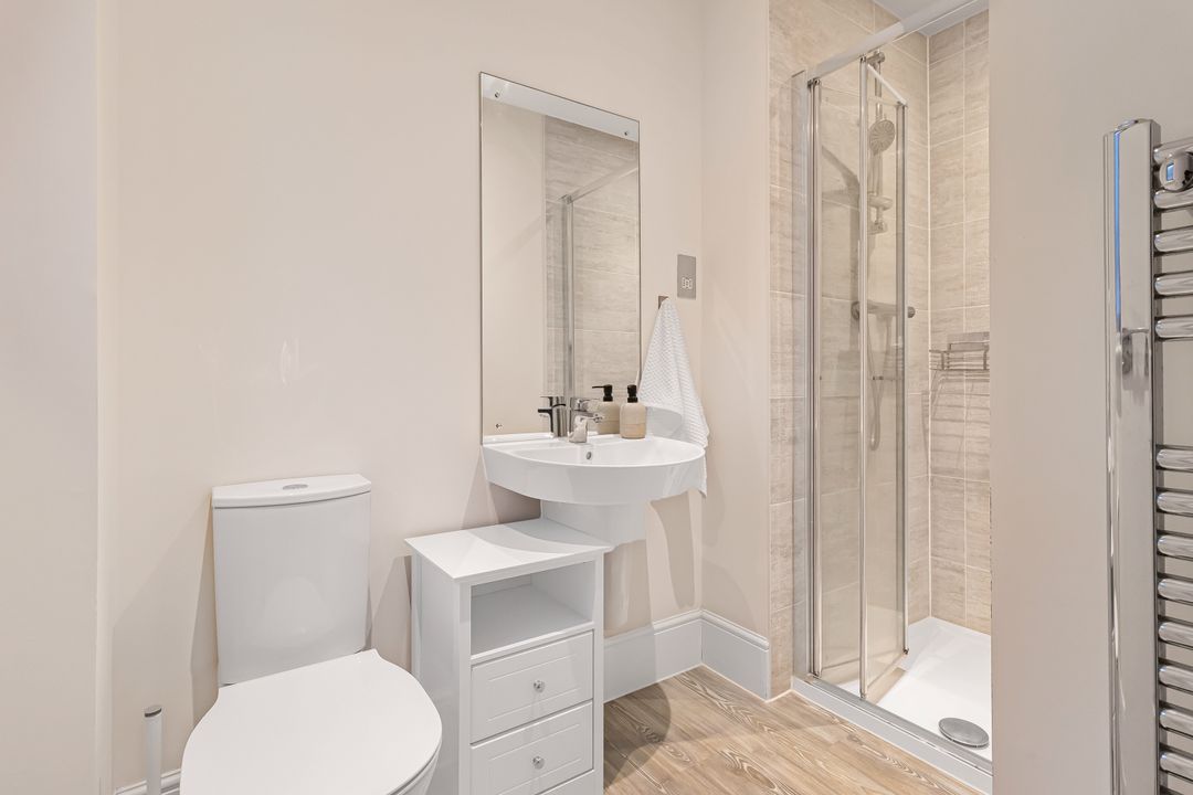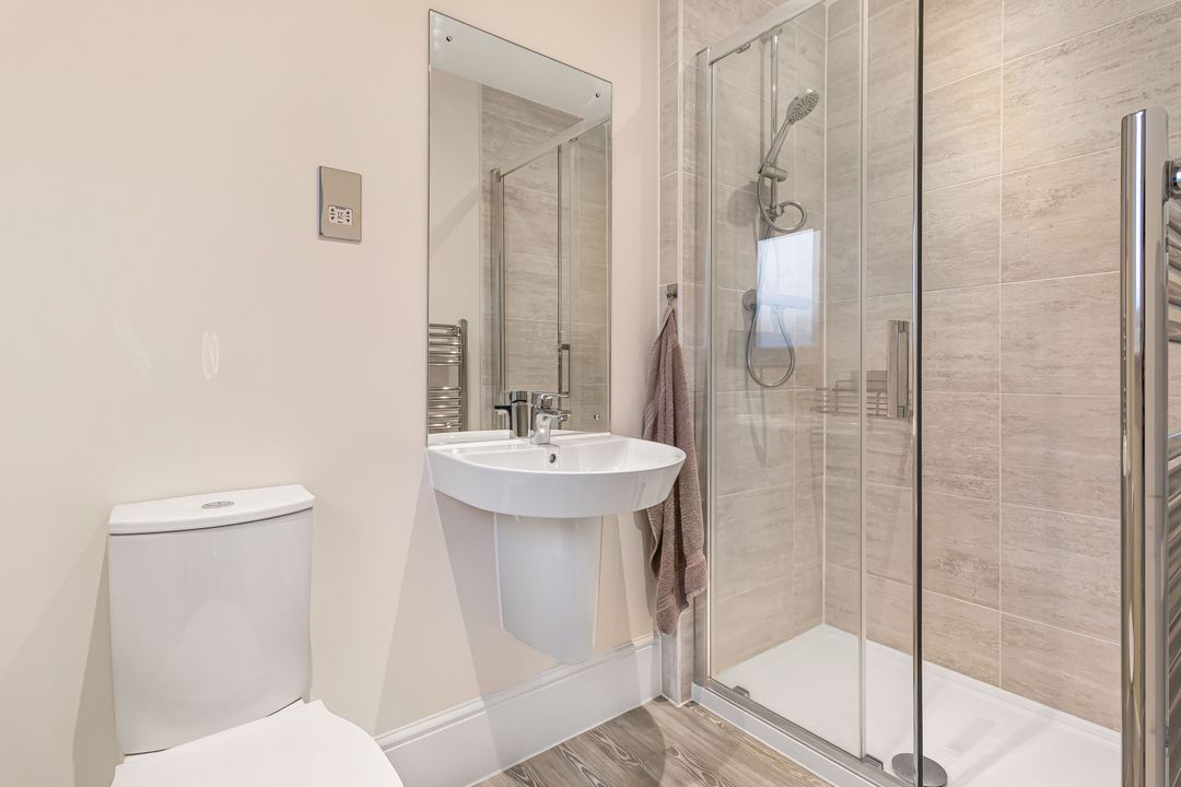 Upstairs, the property offers three generous double bedrooms, each featuring its own en suite shower room and built-in wardrobes. The principal bedroom also includes a dressing area, adding a touch of luxury and practicality. All rooms are well designed, offering plenty of storage and a bright, contemporary feel throughout.
