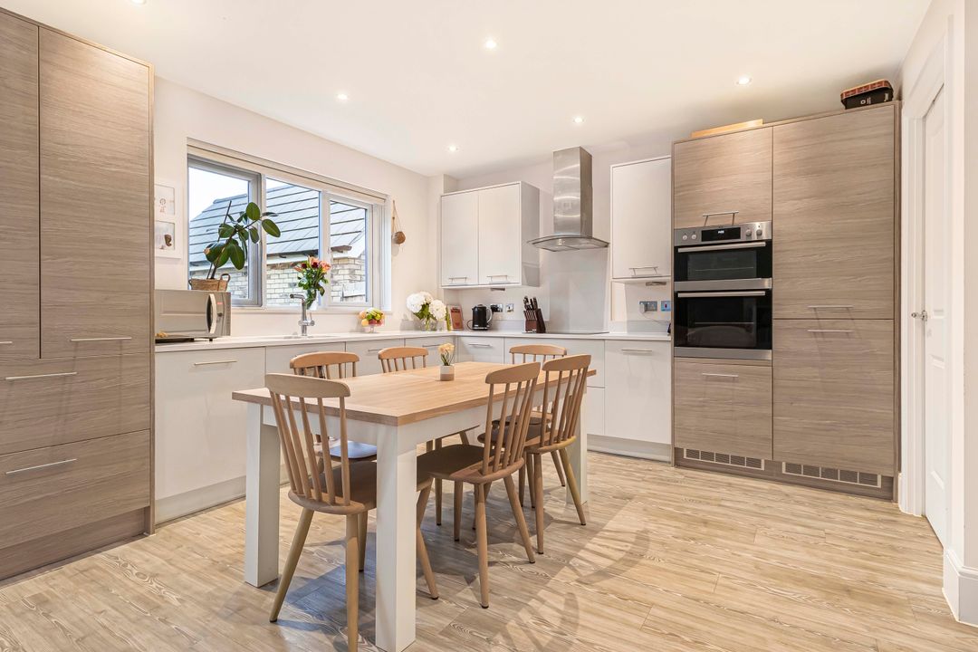 A beautifully presented modern home offering spacious, high-quality accommodation with three double bedrooms, each featuring an en suite and built-in wardrobes. Stylish open-plan living spaces, a landscaped garden, and a garage complete this exceptional property in a peaceful setting.