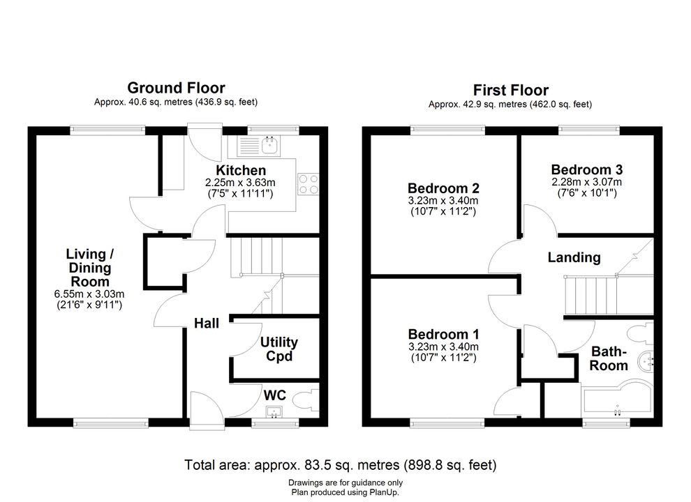 A bright and well-proportioned, staggered terraced home offering well-presented accommodation arranged over two floors and extending to approximately 83.5 sq. metres (898.8 sq. ft.). The property occupies an attractive position backing directly onto open fields and benefits from a private rear garden.