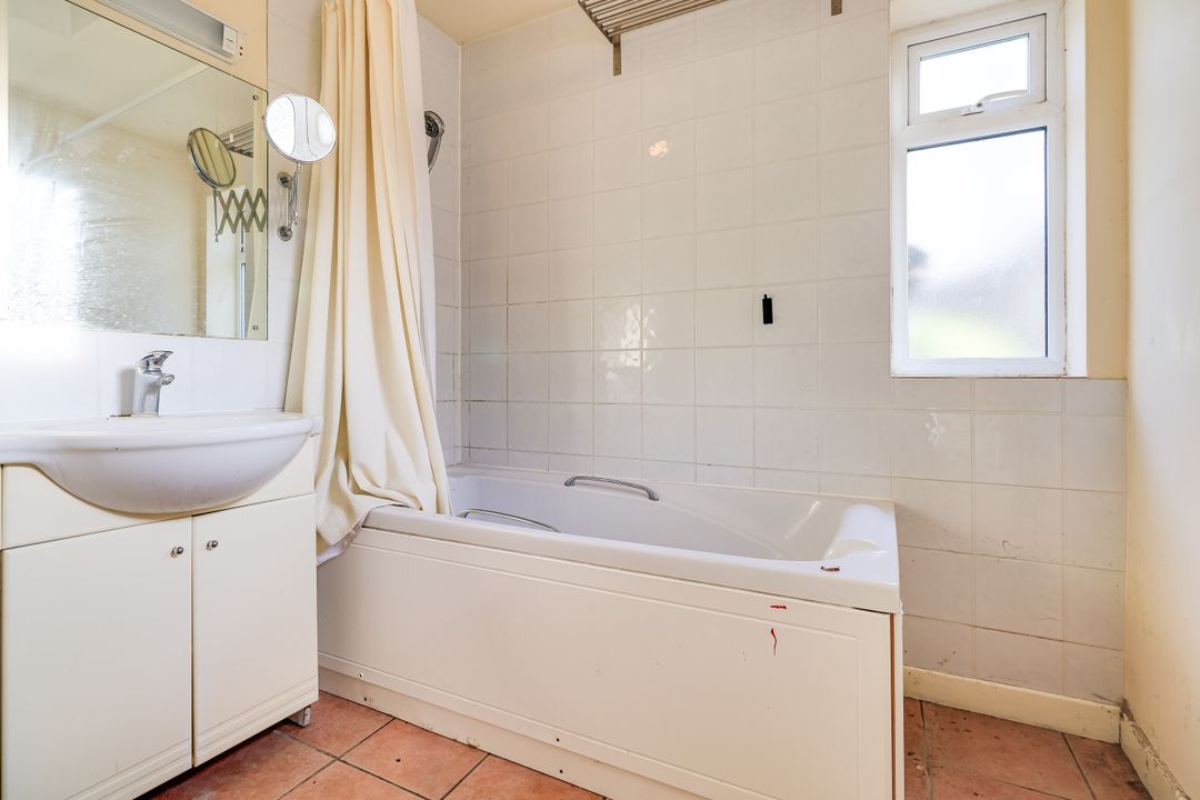 On the first floor are two double bedrooms; the front bedroom features an ornamental fireplace, and the second room has a shower cubicle. The third room could easily be converted to a first floor bathroom, as a w.c. and handbasin are already installed.