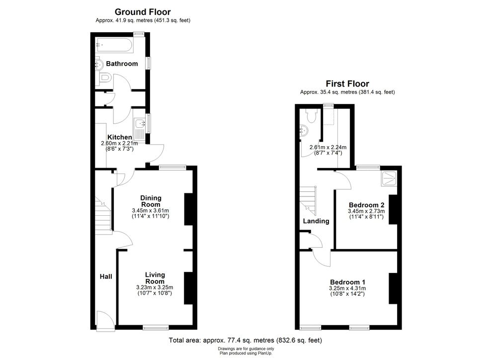 The front door opens to the entrance hall, which provides space for coats and shoes and a welcoming area to receive guests. The sitting/dining room is a bright dual aspect room with a sitting area set around the fireplace at one end, and at the other is plenty of space for a dining table and chairs. The kitchen is fitted with a range of cabinets set above and below the surfaces, and there is appliance space and a door out to the garden. The bathroom is off the kitchen and is fitted with a bath with shower over, w.c., and handbasin.