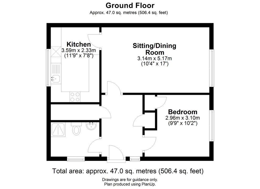 The accommodation is centred around a spacious sitting/dining room, measuring 17ft in length. Large windows allow for plenty of natural light, creating a bright and welcoming living space. Adjacent is a modern fitted kitchen with good countertop space, storage units and room for appliances.