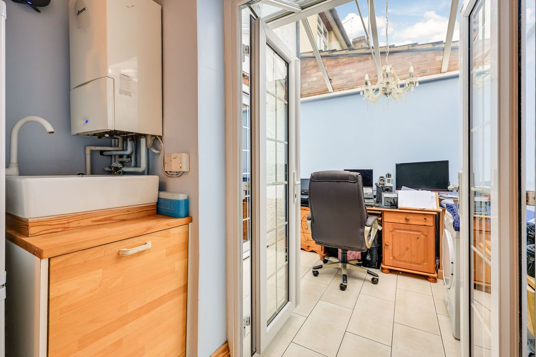 Arranged over three floors, the accommodation is both versatile and well-presented throughout. The welcoming entrance hall leads to a bright and spacious sitting and dining room, featuring a bay window to the front and a sliding glazed door to the rear that opens into the office/study. This additional, light-filled reception space benefits from a glass roof and provides a pleasant connection through to the rear living space.