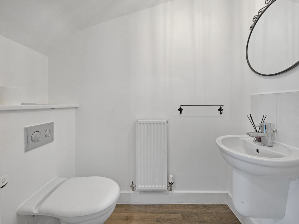 The ground floor features a bright and open-plan kitchen/dining room, equipped with integrated fridge/freezer, dishwasher and washing machine, plus a water softener. To the rear, a spacious sitting room opens out through double doors to the garden, providing a relaxed setting for family life. A cloakroom/WC and under-stairs storage complete the ground floor.